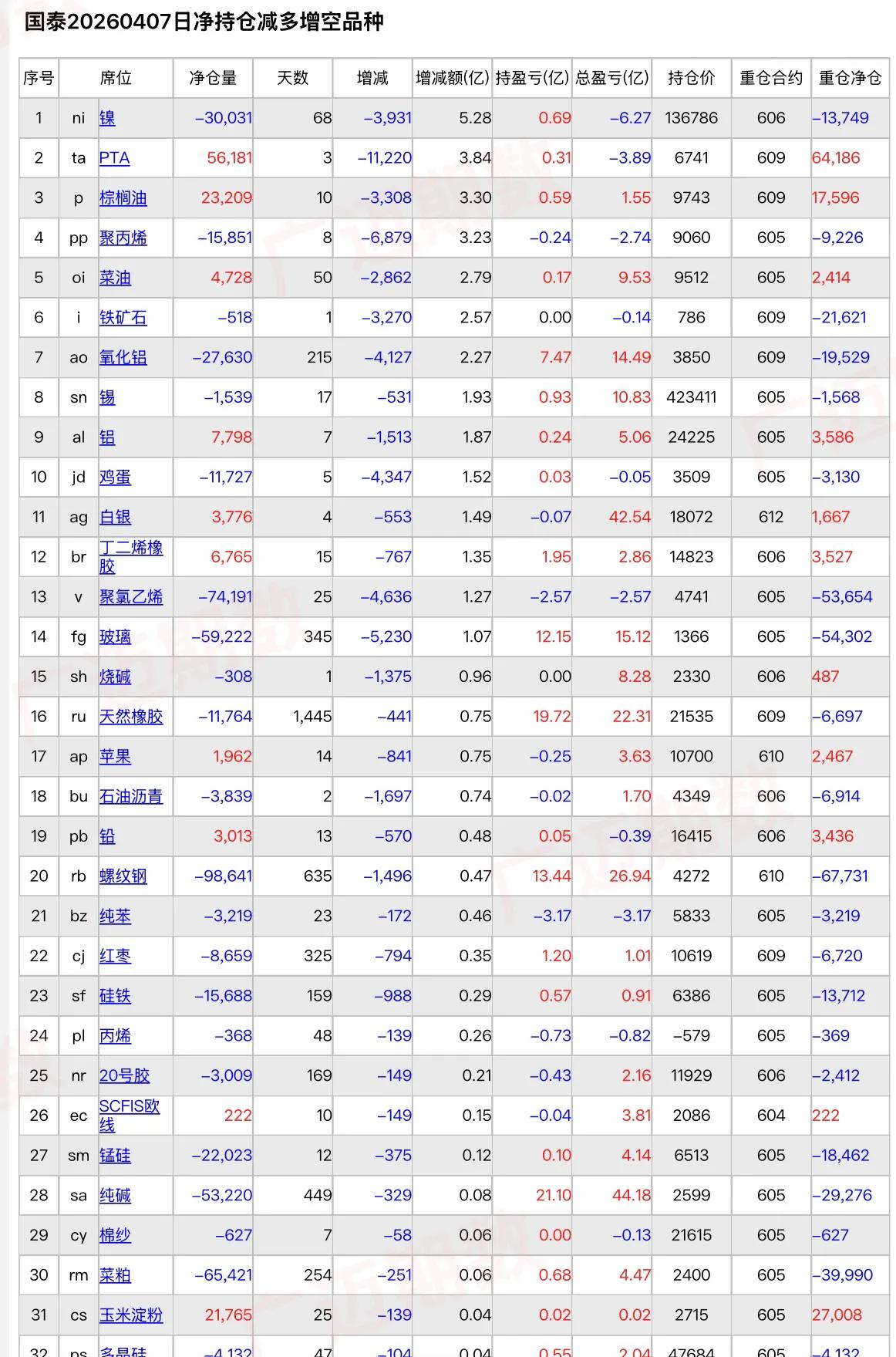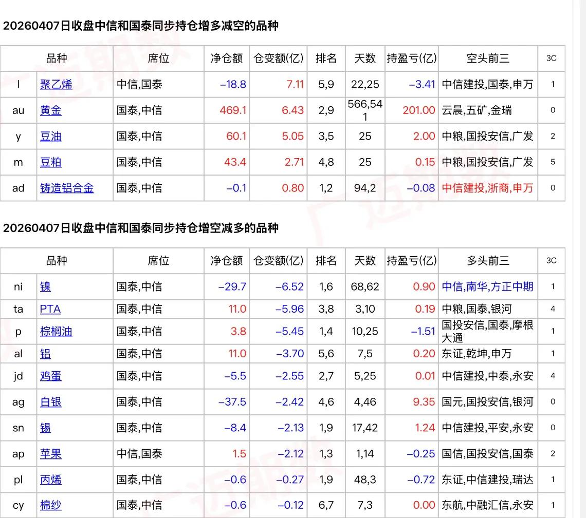 中信和国泰增持沪银、镍净空单,增持沪金净多单…