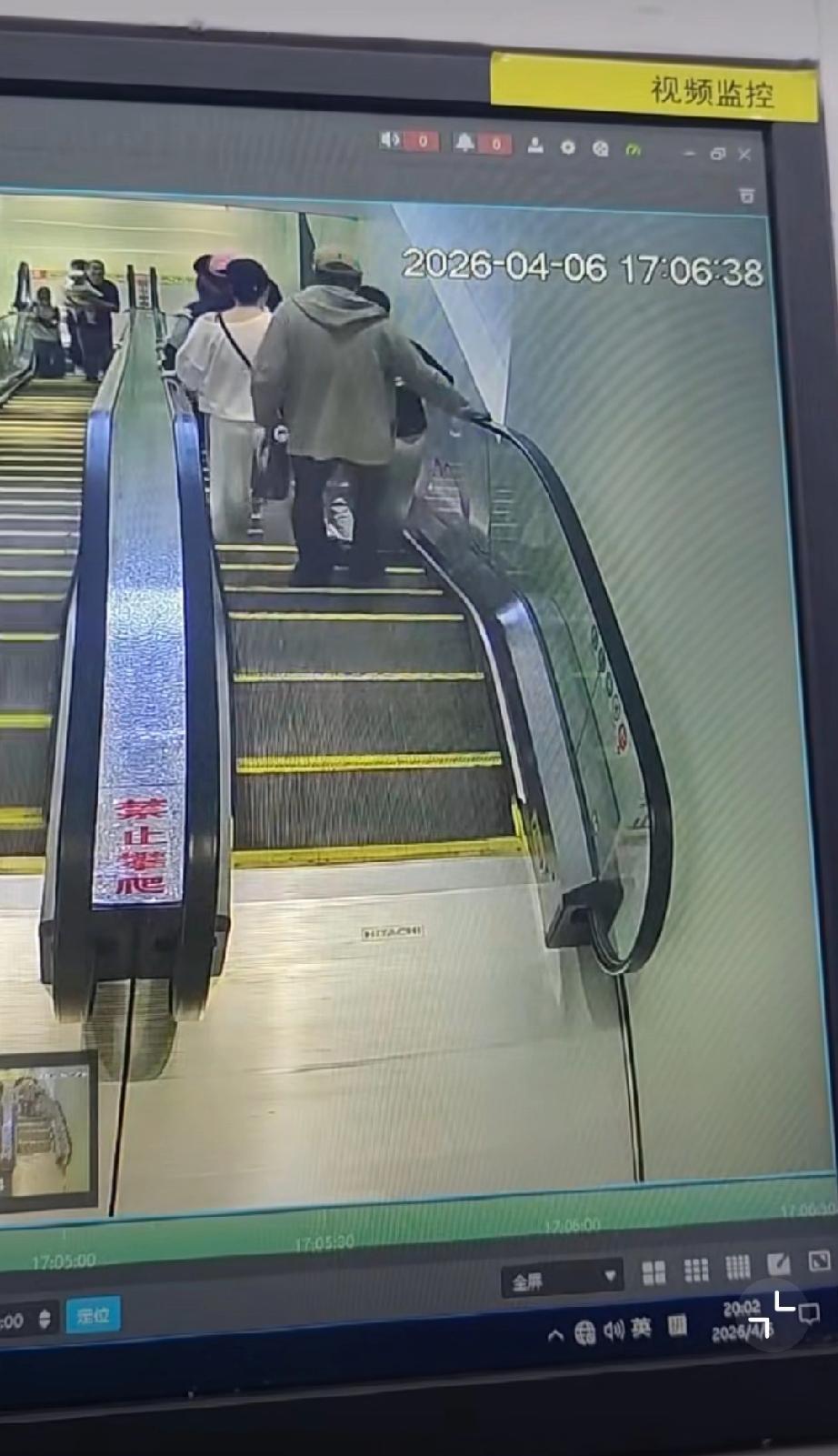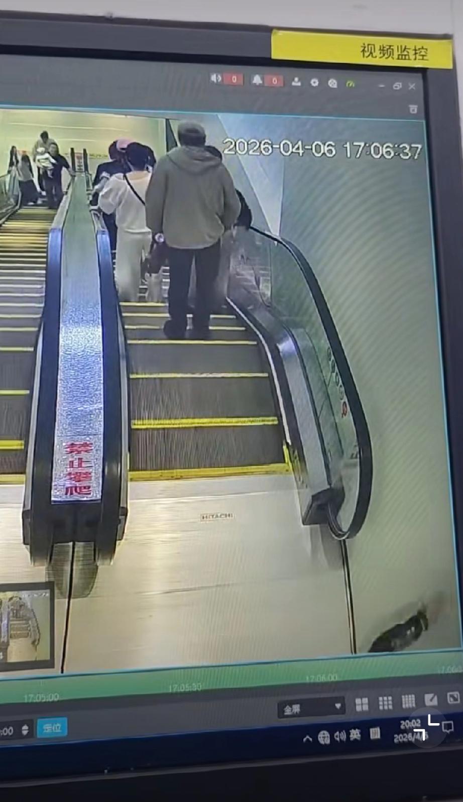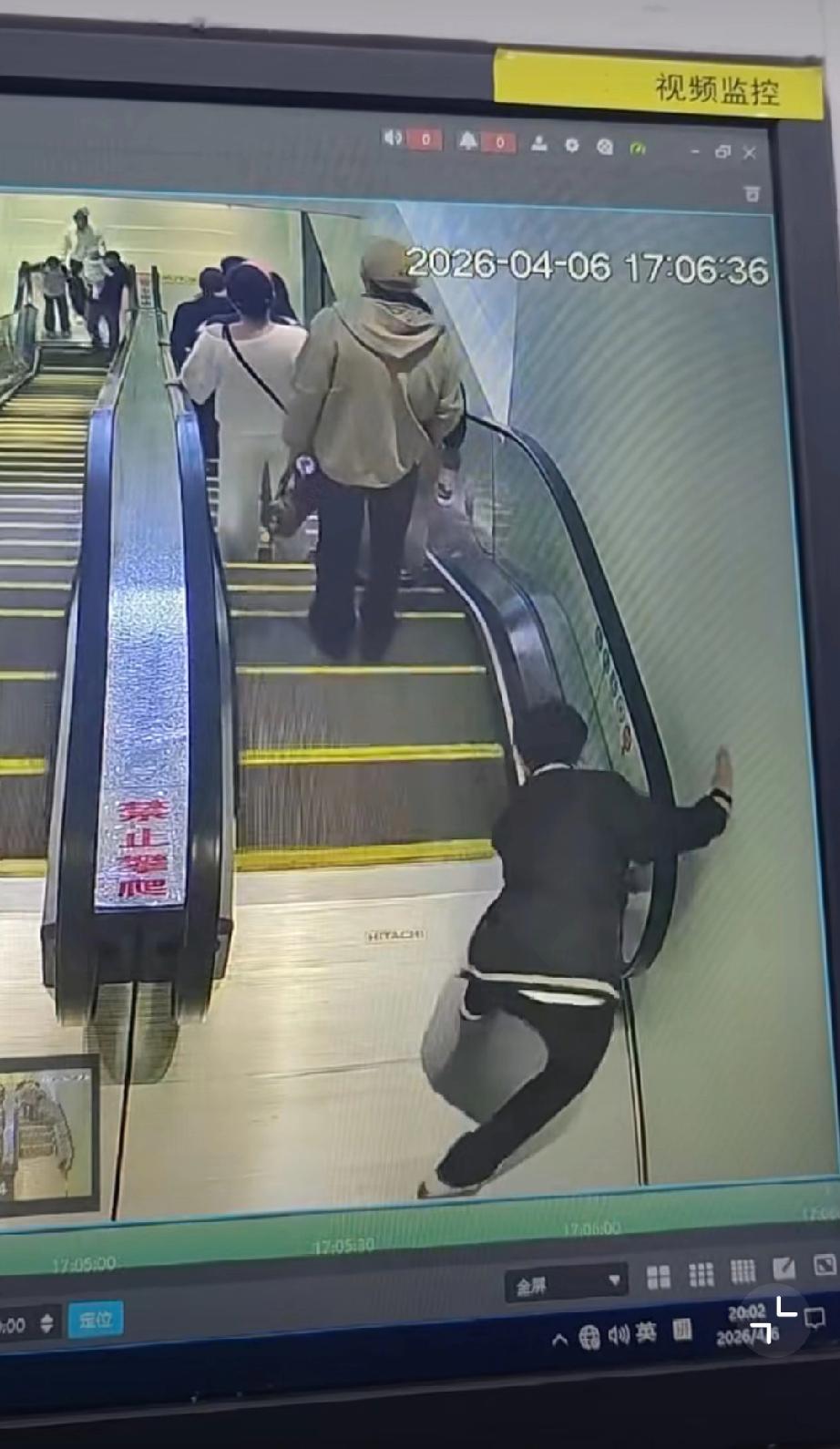 4月6日,湖北潜江一男子突然按停电梯扶梯,上面多名乘客瞬间失去平衡,身体前倾,险