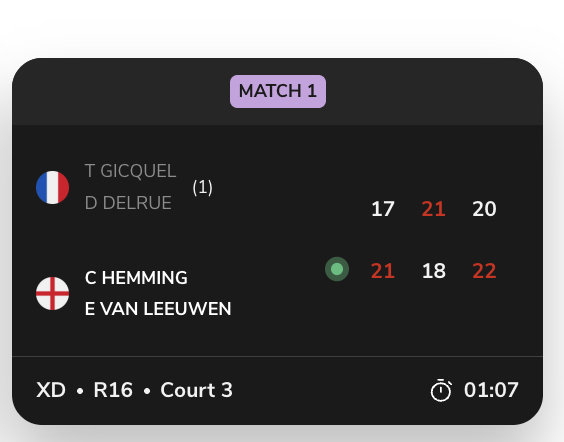 亨明/埃斯特尔🏴 21-17、18-21、22-20 🇫🇷吉凯尔/德尔吕