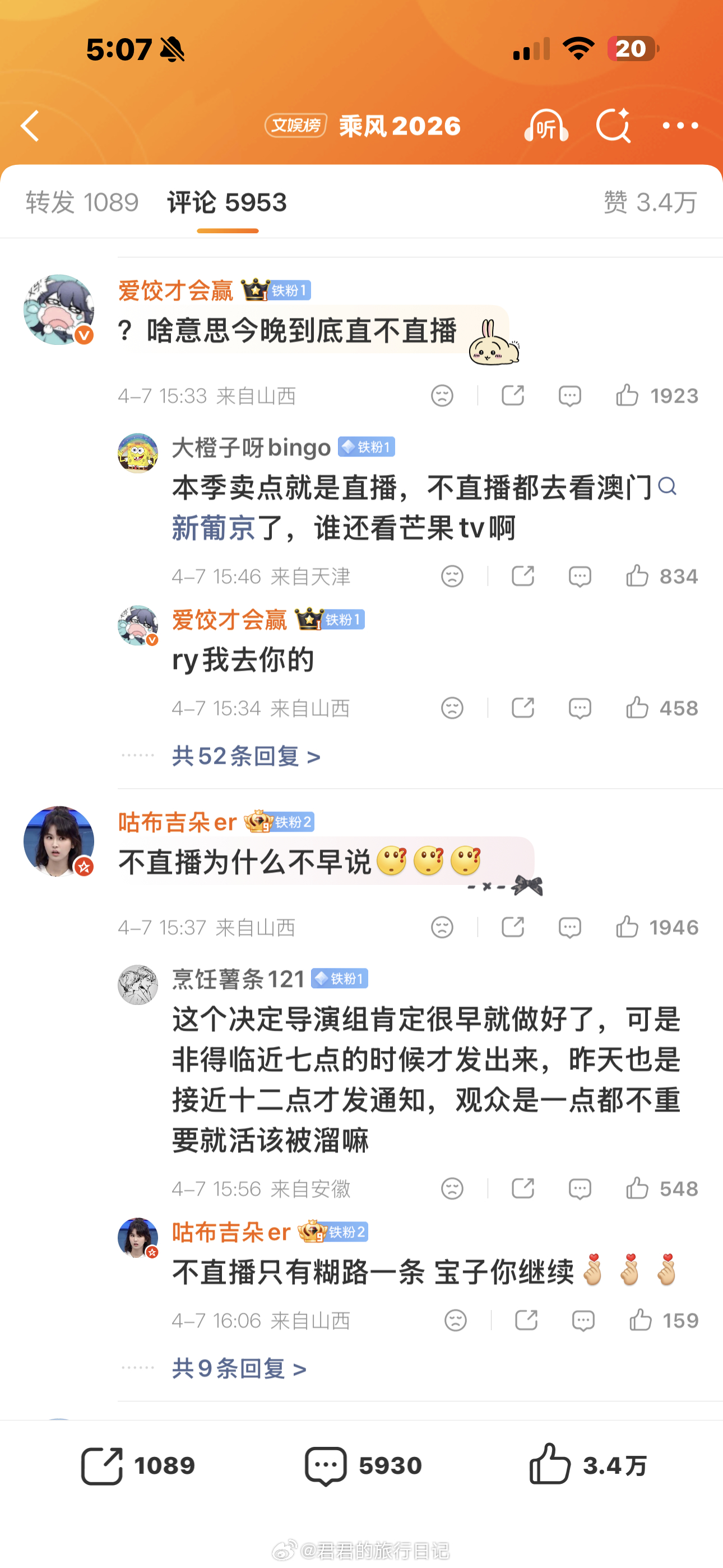 浪姐刚刚再次宣布不直播,改成录播真人秀今年本来说全程直播,现在改为只有公演才直播