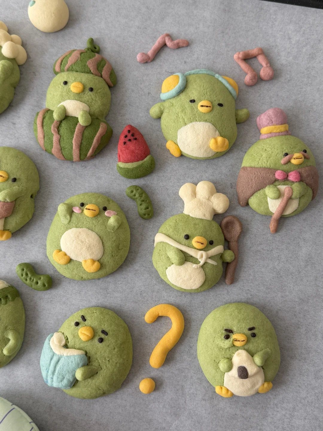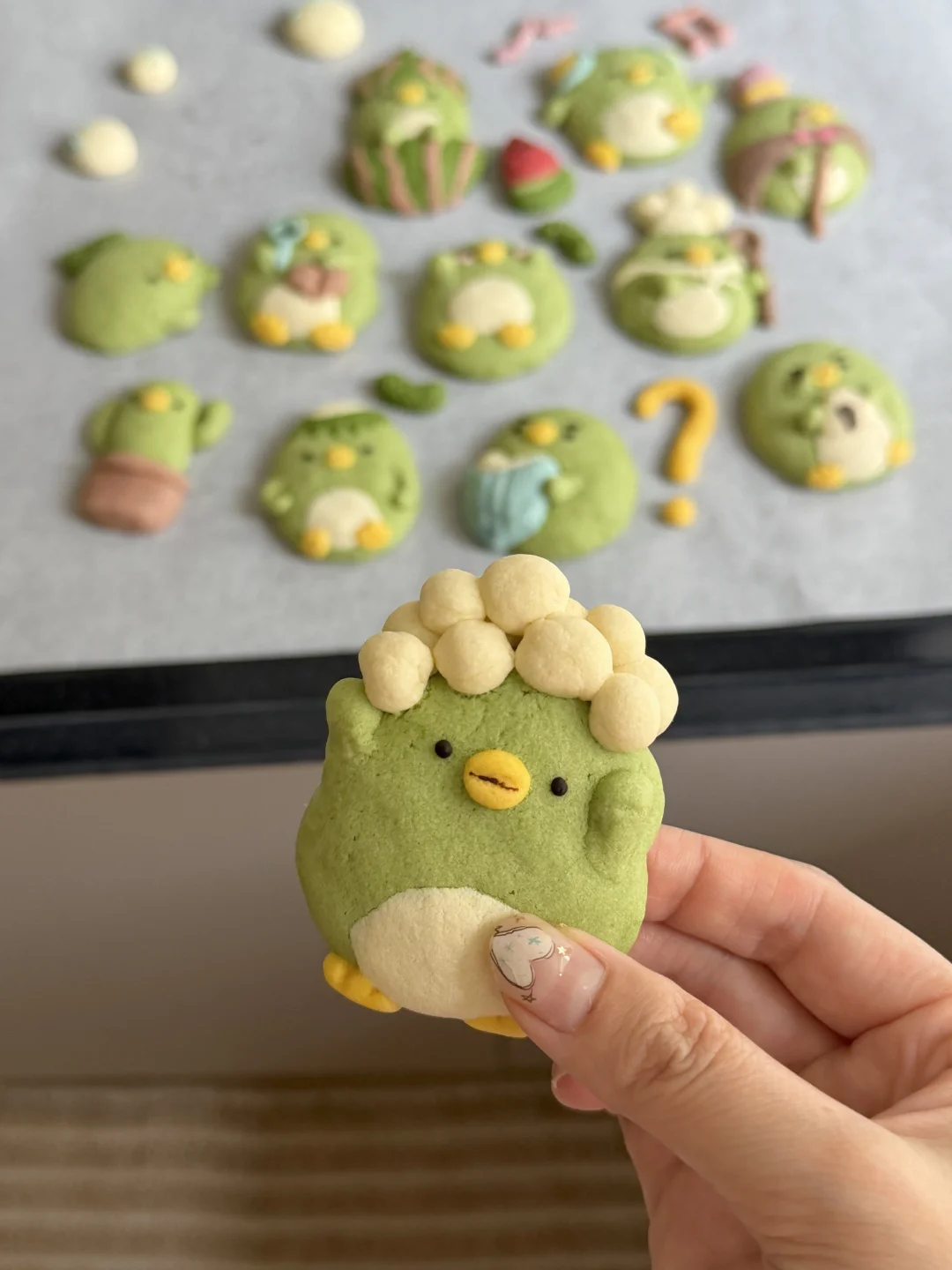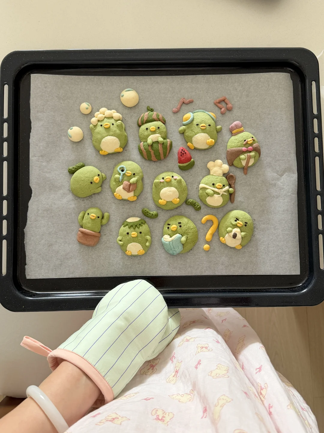 6️⃣烤箱预热,150°烤18分钟左右,不用盖锡纸。烤好后晾凉。用融化的巧克力装在裱花袋里,画出五官细节