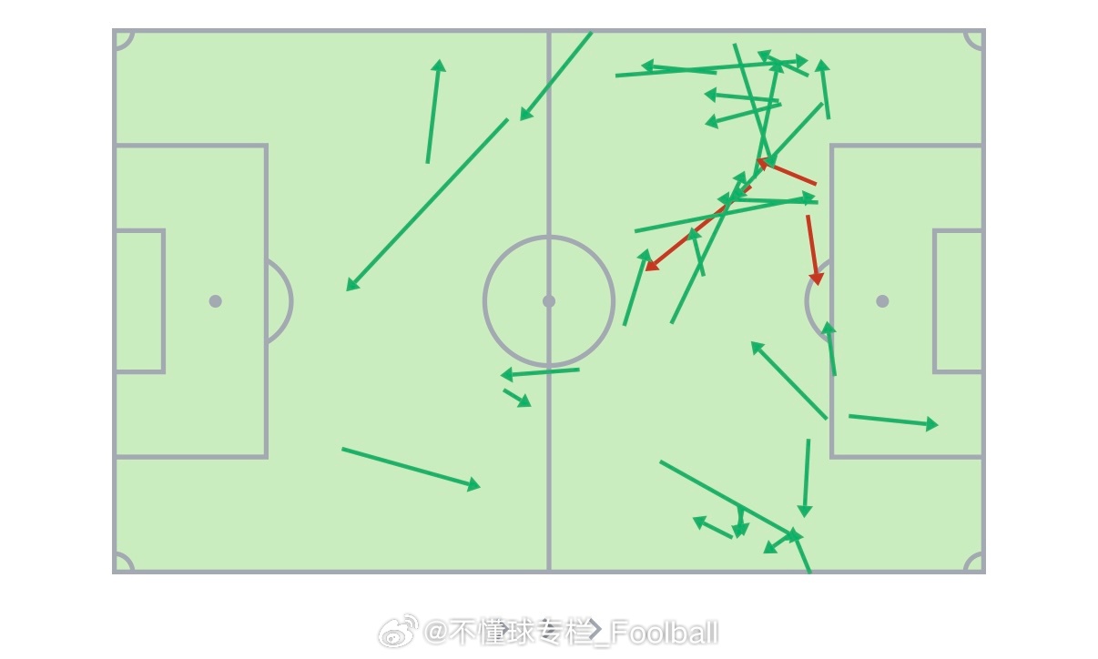 图一-图二:拉唐踢中锋的传球图。图三-图四:特谢拉踢十号位的传球图。图五-图六: