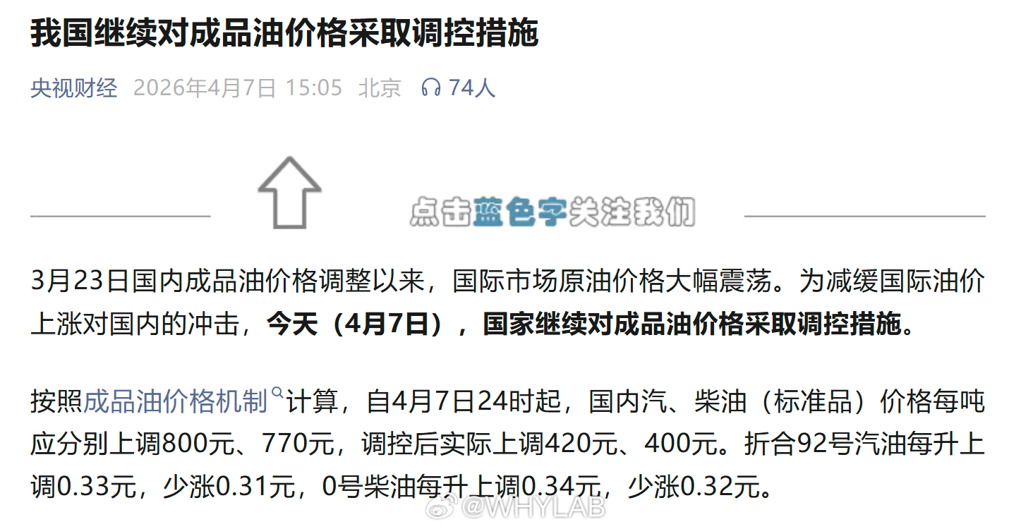 4月7日24时,国内油价又要涨了!这次汽油每吨上调420元,柴油每吨上调400元