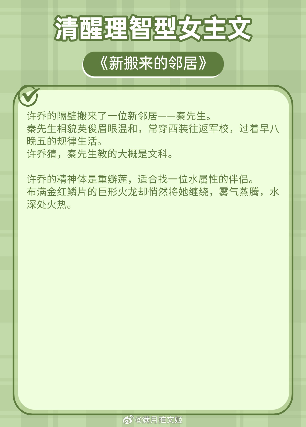 《以爱为名》作者:梦筱二《新搬来的邻居》作者:笑佳人《婚后第二年》作者:半截白菜《攀高枝》作者:白鹭成双《公子言欢》作者:屋里的星星《糙汉与娇花》作者:林中有雾推文言情小说推荐推文