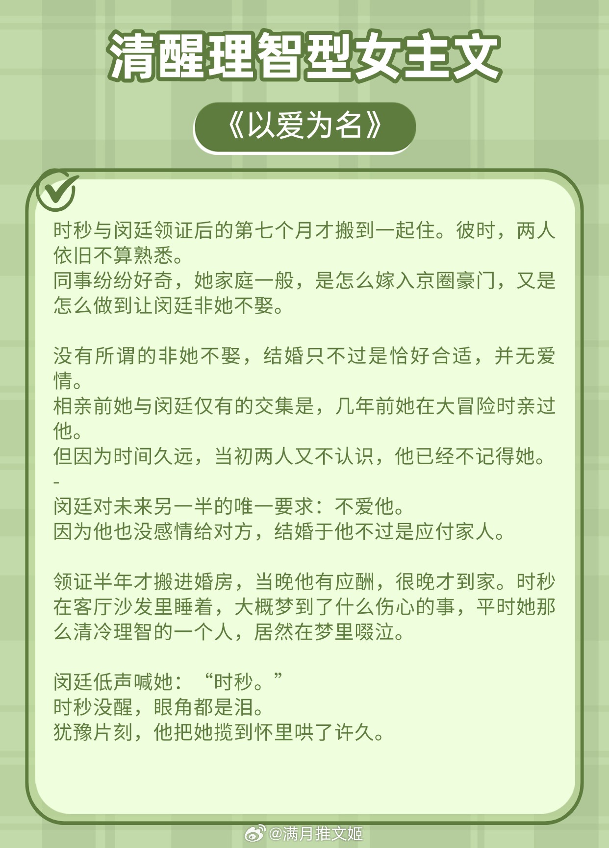 【清醒理智型女主文】她一定是太爱我了,才会骗我吧《以爱为名》作者:梦筱二《新搬来