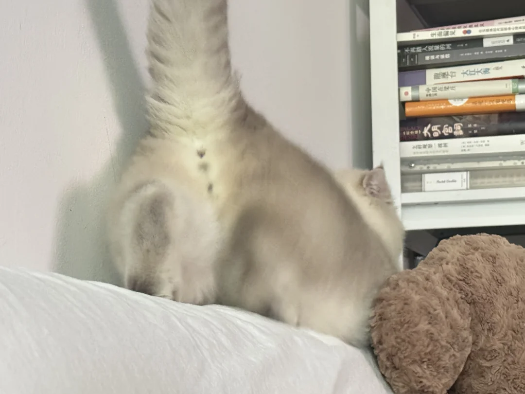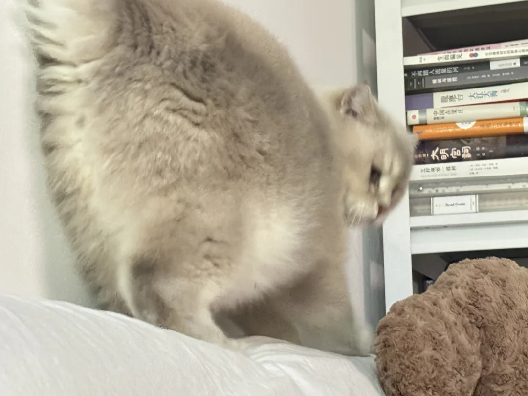 一只小猫咪因为掉毛,所以它的主人不让它上床,可是好不容易不掉毛了,小猫小心翼翼地试探,结果还是不让上