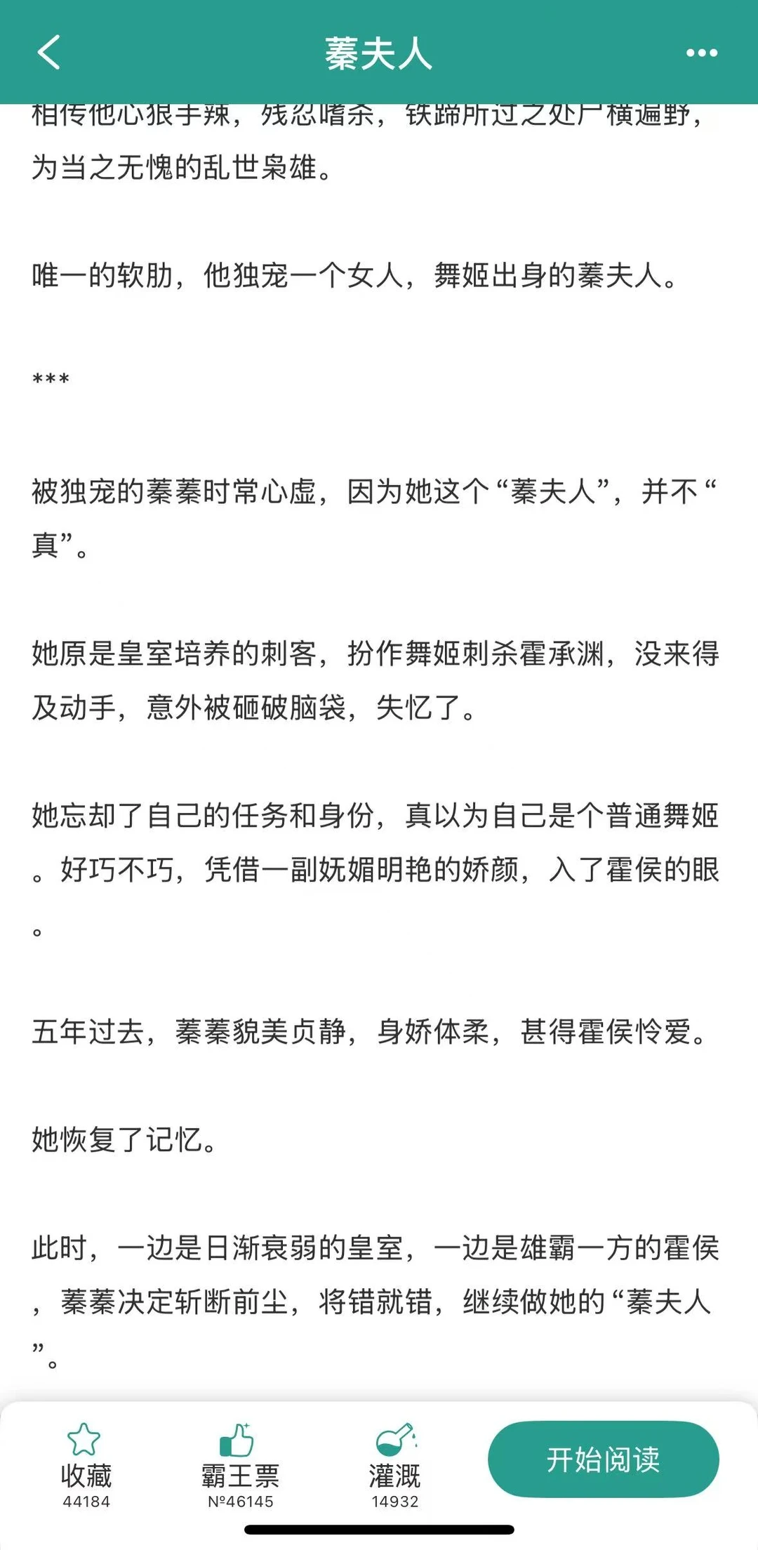 [微笑R]聪慧狡黠 × 偏执狠厉 [偷笑R]古言/先婚后爱/宫廷侯爵/日久生情/失忆梗/甜宠 [飞吻R]作者大大写得还挺好的,整个故事的风格比较古风,感情线甜而不腻,失忆女刺客x乱世枭雄的组合,有冲突有虐点,但并不狗血;故事线张弛有度,悬念迭起。 [赞R]整个故事偏向甜宠为主,权谋为辅的基调,没有太大的狗血元素,但女男主之间的感情,还挺抓人眼球,挺好嗑的。