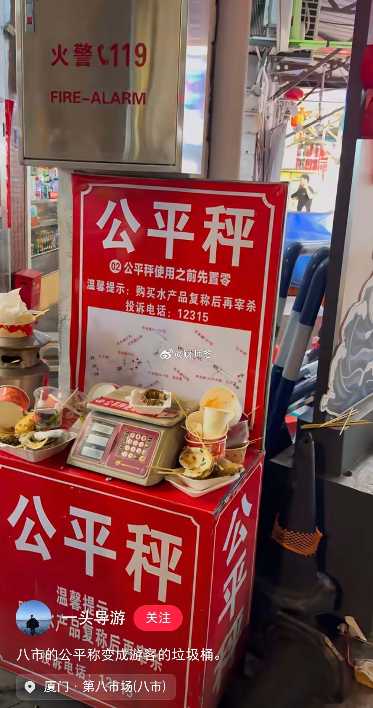 网友爆料:厦门八市的“公平秤”……这算是什么行为艺术还是讽刺?厦门如果有像杭州一