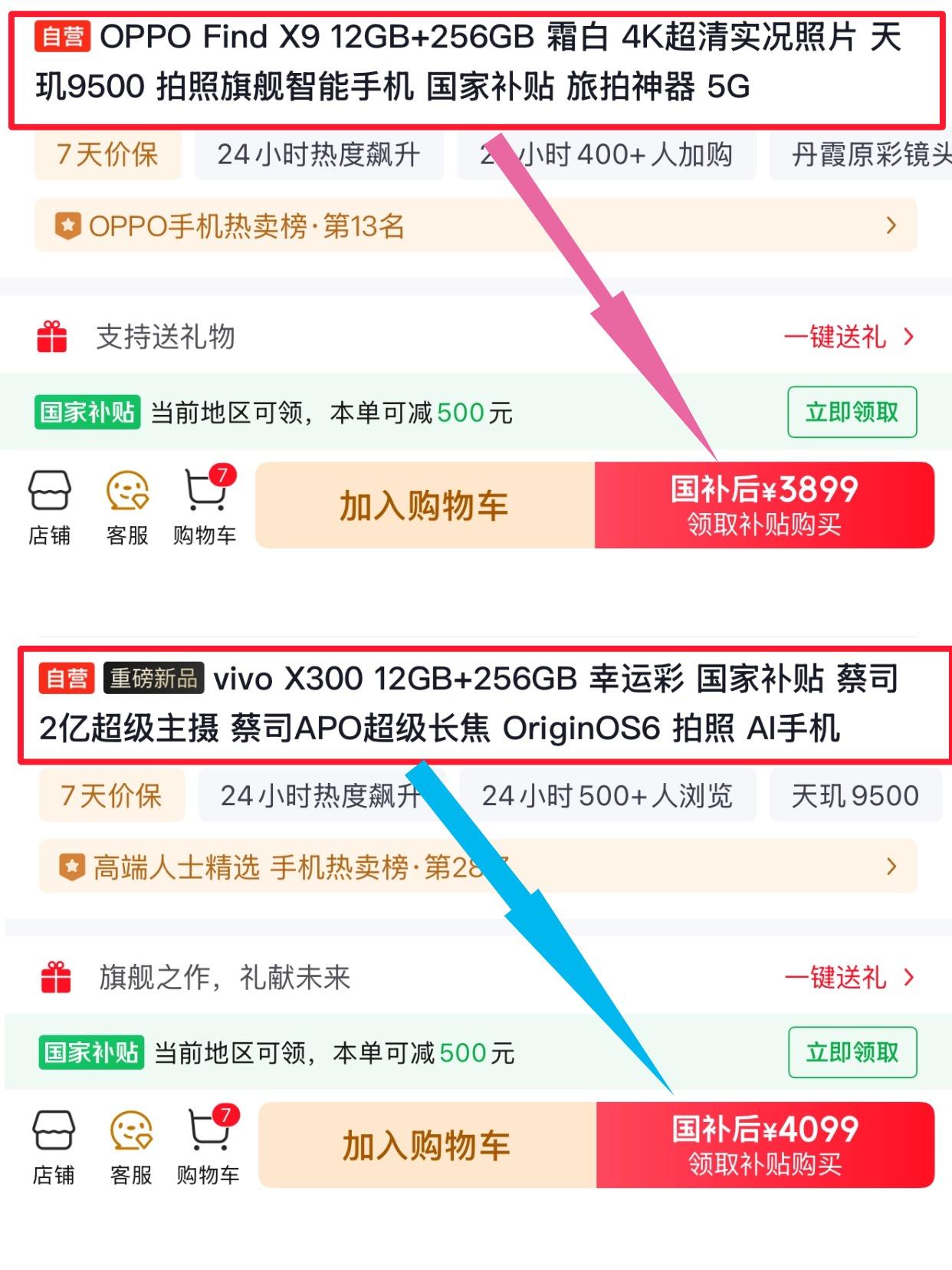 X300和Find X9,旅游拍照选哪个? 本来是准备暑假旅游换一台拍照好的手机,一直在X300和Find X9之间纠结。 结果就遇上了这波手机涨价潮,没有早享受到,反而还要加钱了 X300这轮已经涨到了4099,Find X9系列暂时还没动,比X300亲民了几百块。这个差价,在涨价潮里算是真实存在的窗口了。 - 本来两台都是旗舰拍照机,各有各的好。 X300是蔡司镜头,人像拍摄和风景拍摄都不错,看网上的评测拍照放大后细节也很有吸睛! Find X9的话有哈苏调色,拍出来的颜色有氛围感,旅拍照片不用额外调色就能直接发,还有很多实况图玩法。 - 另外就是X9的电池更大,有7025mAh,X300是6040mAh,感觉出去旅游拍照的话X9好像更耐用一些,不用一直找地方充电。 - 但我仔细想了一下自己的需求:暑假出去玩,一天要拍很多,需要续航撑得住。Find X9的电池是7025mAh,Pro版是7500mAh,这个容量在旗舰里算很大了,加上价格确实更香一些…… - 有没有入了Find X9或者X300的,说说实际拍照体验?