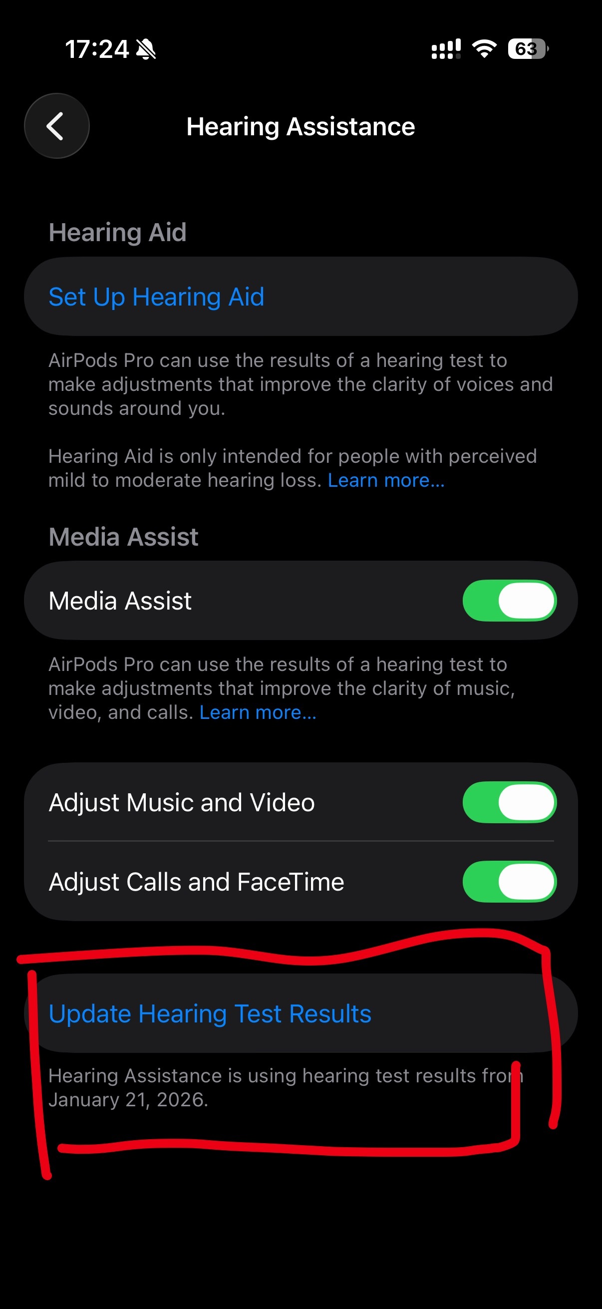 然后进设置页面才发现,它开了「听力辅助」,用的是我今年 1 月底还在急性中耳炎的时候的听力测试结果做的补偿。