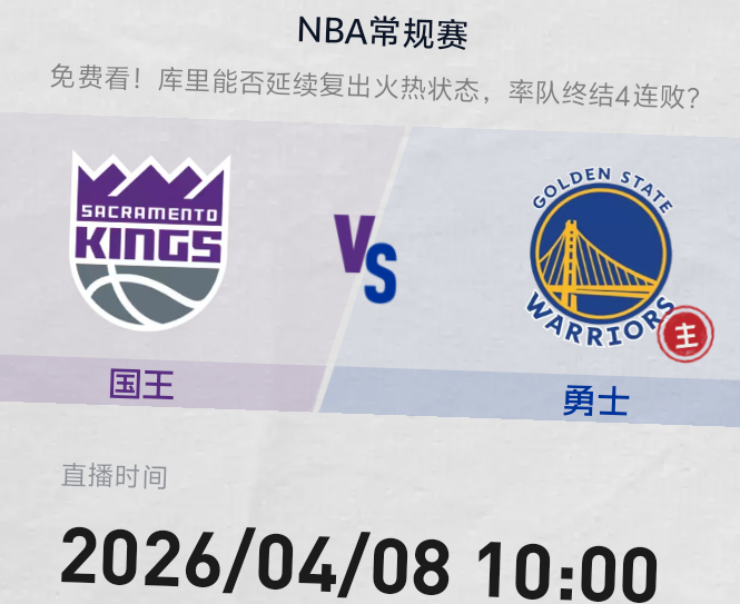 明早10点 金州勇士主场迎客国王队复出第二场 库里能否延续手感率队取胜双方预计首发勇士:波杰 梅尔顿 桑托斯 格林 铂金国王:克利福德 卡特 德罗赞 阿丘瓦 雷诺主场作战 愿球员们健康完赛金州勇士国王vs勇士我的观赛搭子