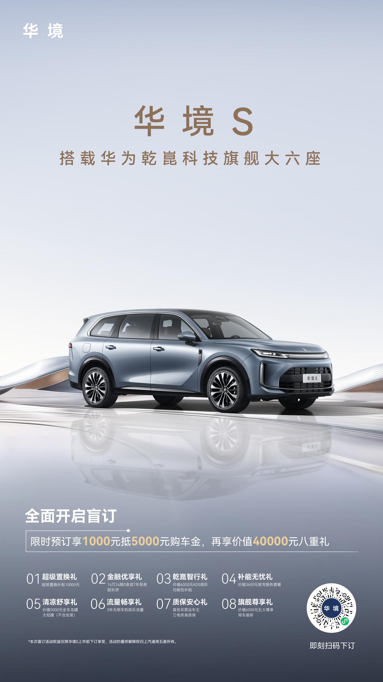 全面开启预订! 限时预订享1000元抵5000元膨胀金 科技旗舰大六座,全系标配华为乾崑 一路万般美好,华境S静待您的亲启 华为乾崑大六座华境S开启预订 华境S上市即支持城区领航辅助
