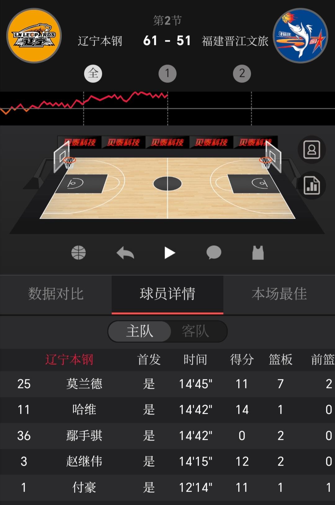 辽宁本钢对阵福建,状态明显回暖!上半场得到61分,4人上双,投中7个三分!其中哈