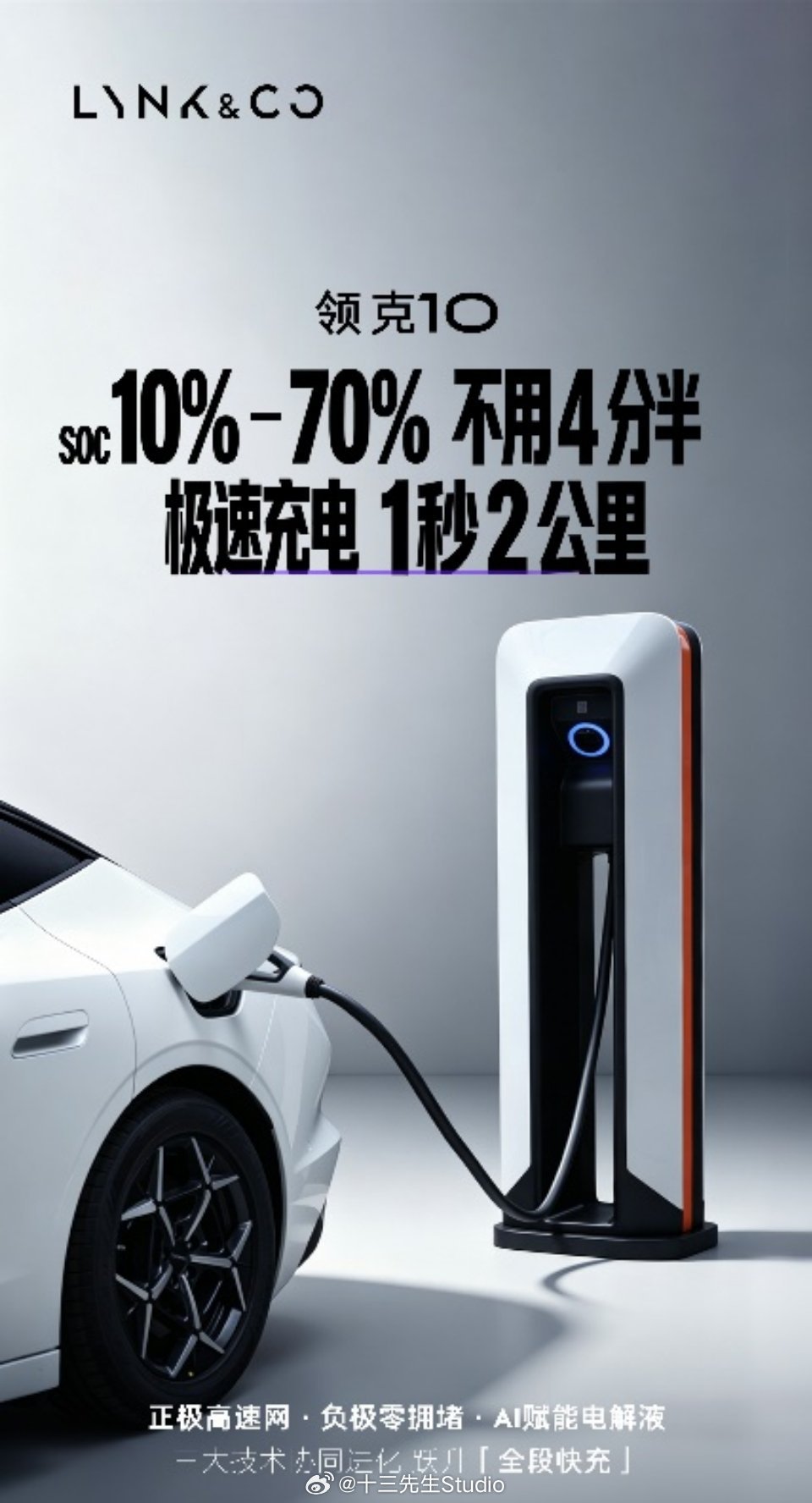 再一个是充电够快,领克10搭载的800V 77度神盾金砖电池,充电倍率5.5C,另外900V 95度神盾金砖电池,续航至高816km,基于V4极充桩能做到每秒极速补能2公里,SOC 10%-70%补能时间最快4分22秒,而从10%-97%充饱也仅需8分42秒。领克10极速充电1秒2公里领克10+亚洲山脊赛道圈速第一大v聊车