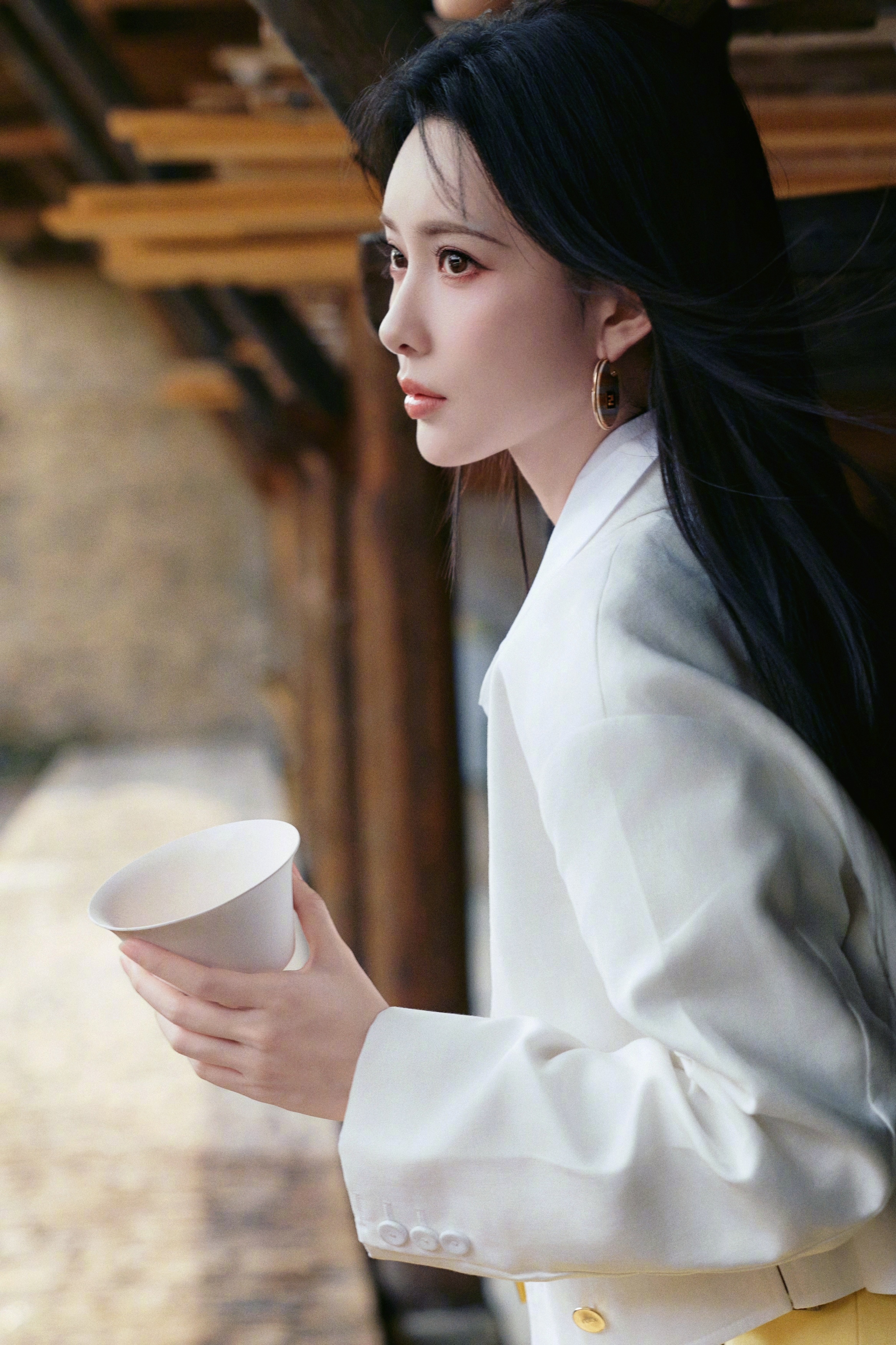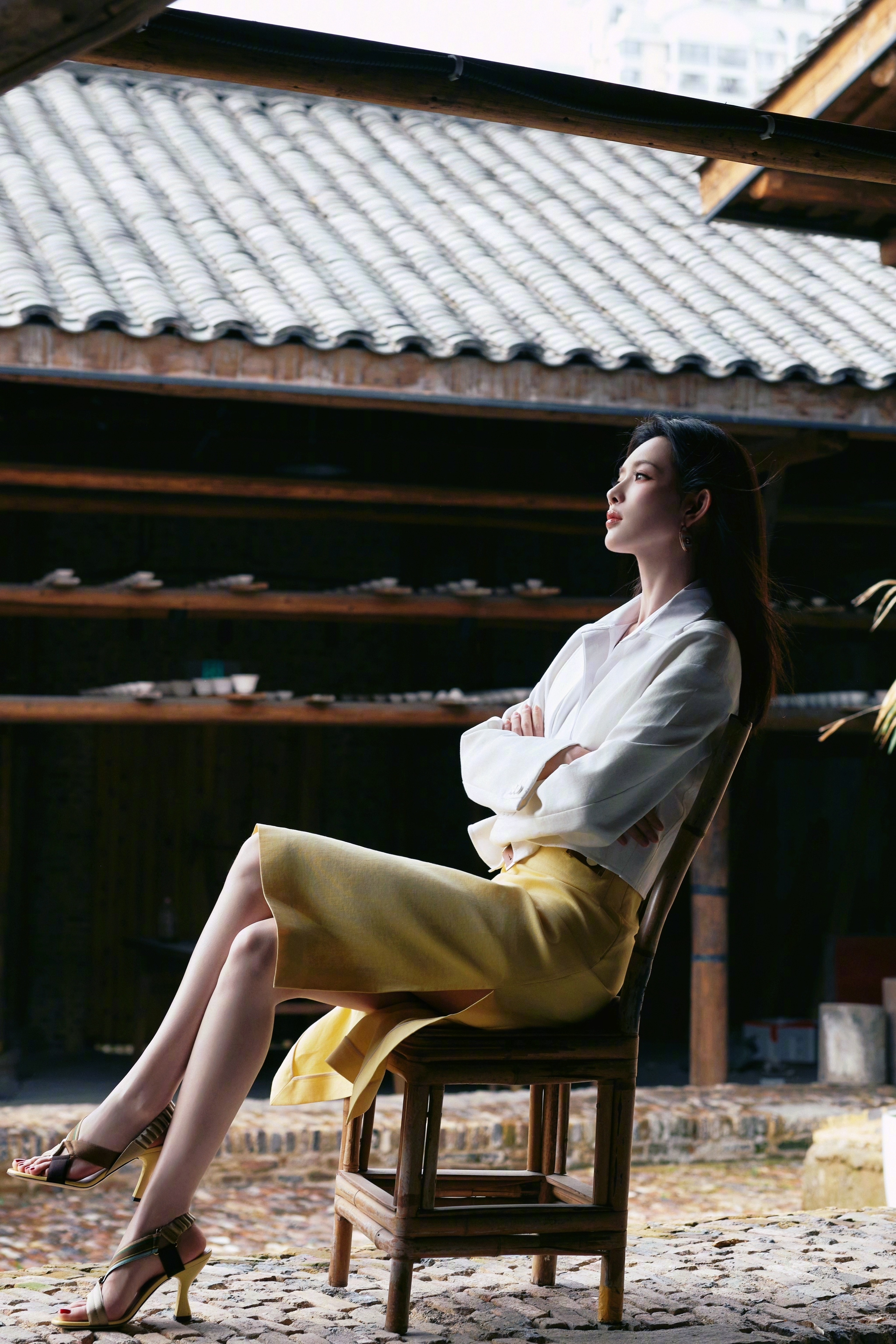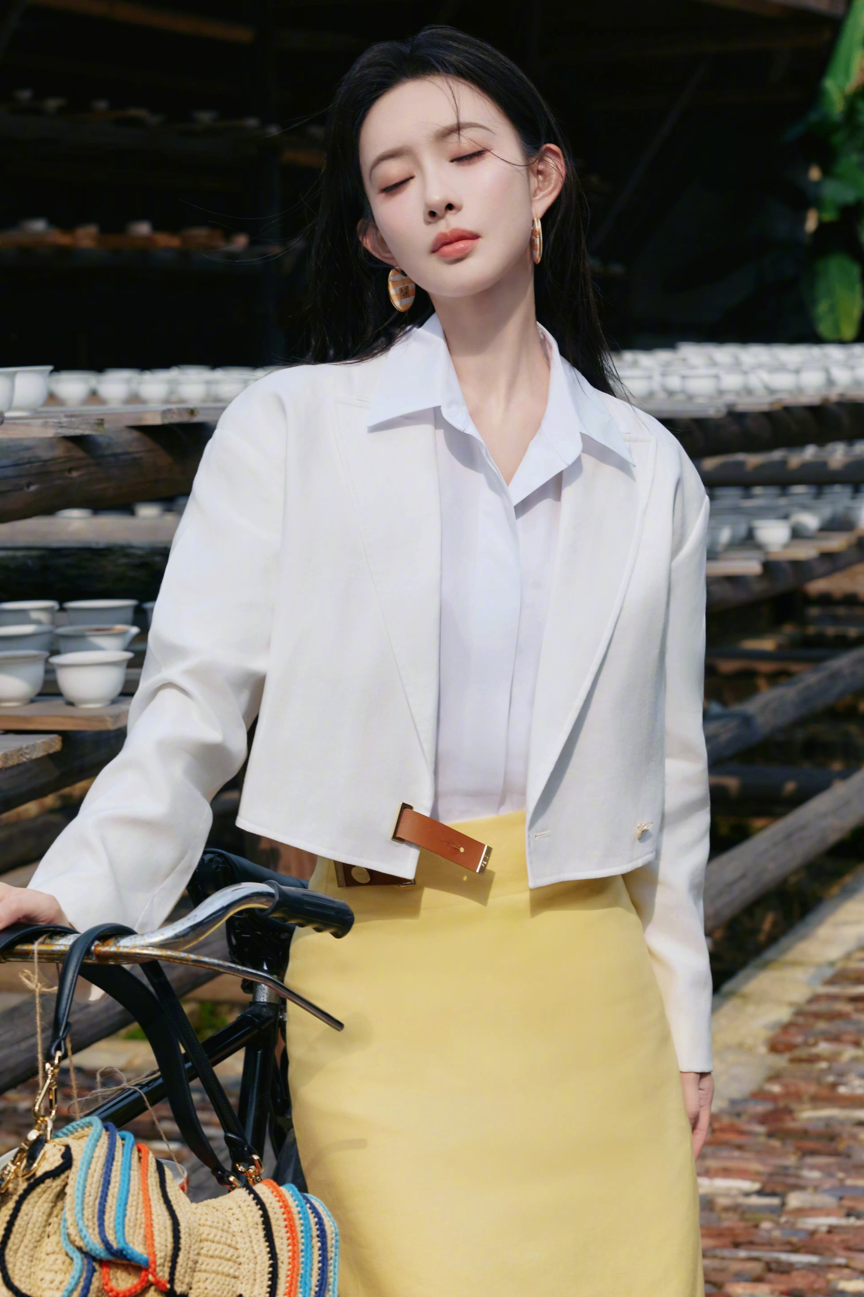 孟子义 现偶孟姐这套白西装黄裙+黑长直,挺有职场那味了。哪位导演递个现偶本子,让