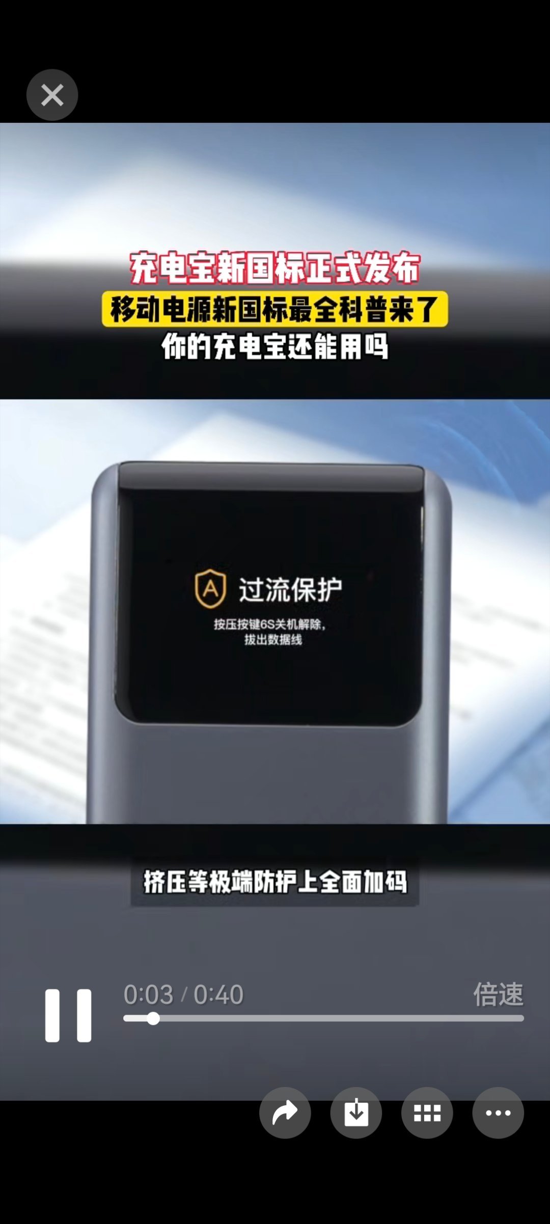移动电源新国标最全科普 “GB 47372—2026”——这是充电宝新国标的编号。新国标设置12个月过渡期,在2027年4月1日后,所有新上市的充电宝都必须符合这个标准。手里已有的老充电宝只要通过3C认证符合旧标准要求,不鼓包、不漏液、不异常发热,正常用没问题。安全标准在进步,我们的认知也要跟上。读懂新国标选对充电宝