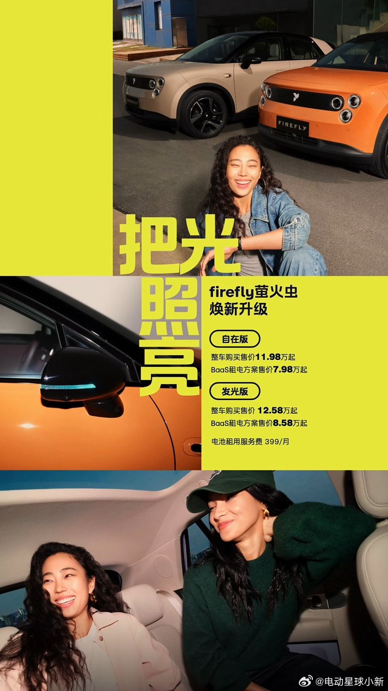 Firefly 焕新款上市,价格保持不变,售价 11.98 万元起。