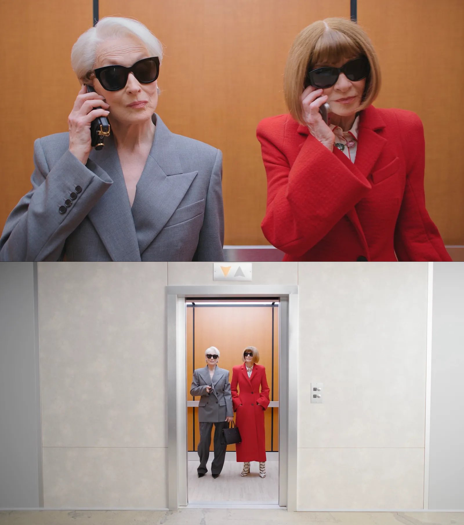 银幕内外两大时尚女魔头同登封面。梅丽尔·斯特里普与安娜·温图尔共同登上了《VOGUE》五月刊封面,为《穿普拉达的女王2》宣传造势,很合适了。