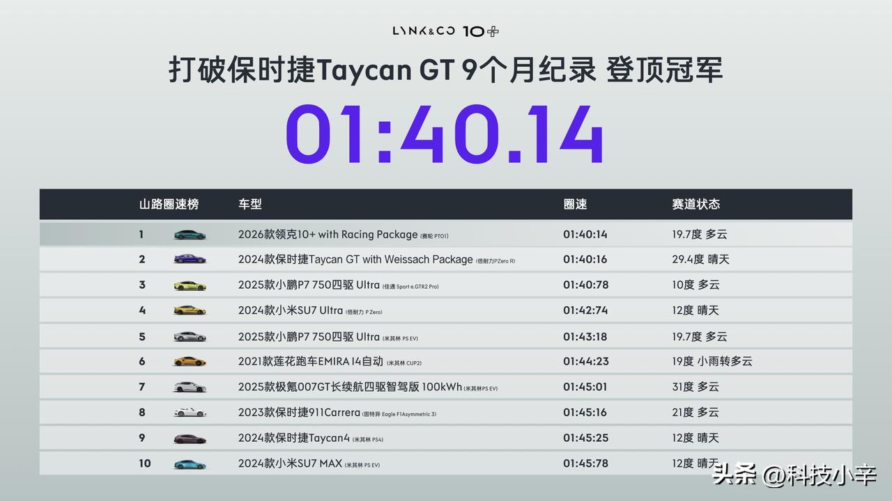 今天领克10+和领克10全球首秀了 ~ 这俩都是纯电轿跑,10+走极致性能路线,925匹马力,3.2秒破百,山路圈速还超了Taycan GT,弯道之王有点东西;10更均衡,20-23万价位,主打性价比。 最让我印象深的是补能速度,900V高压+神盾金砖电池,1秒充2公里,10%-70%只要4分半,这效率确实能缓解里程焦虑。设计也在线,5米车长低趴姿态,碳纤维尾翼、赛影蓝车色,运动感拉满。 个人觉得领克这次把性能和实用平衡得不错,20多万给到这种三电规格,对喜欢驾驶的年轻人挺有吸引力。领克10极速充电1秒2公里 领克10+亚洲山脊赛道圈速第一