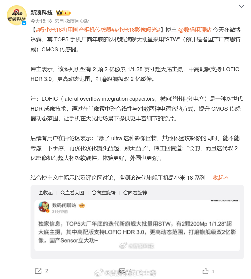 曝小米18将用国产相机传感器