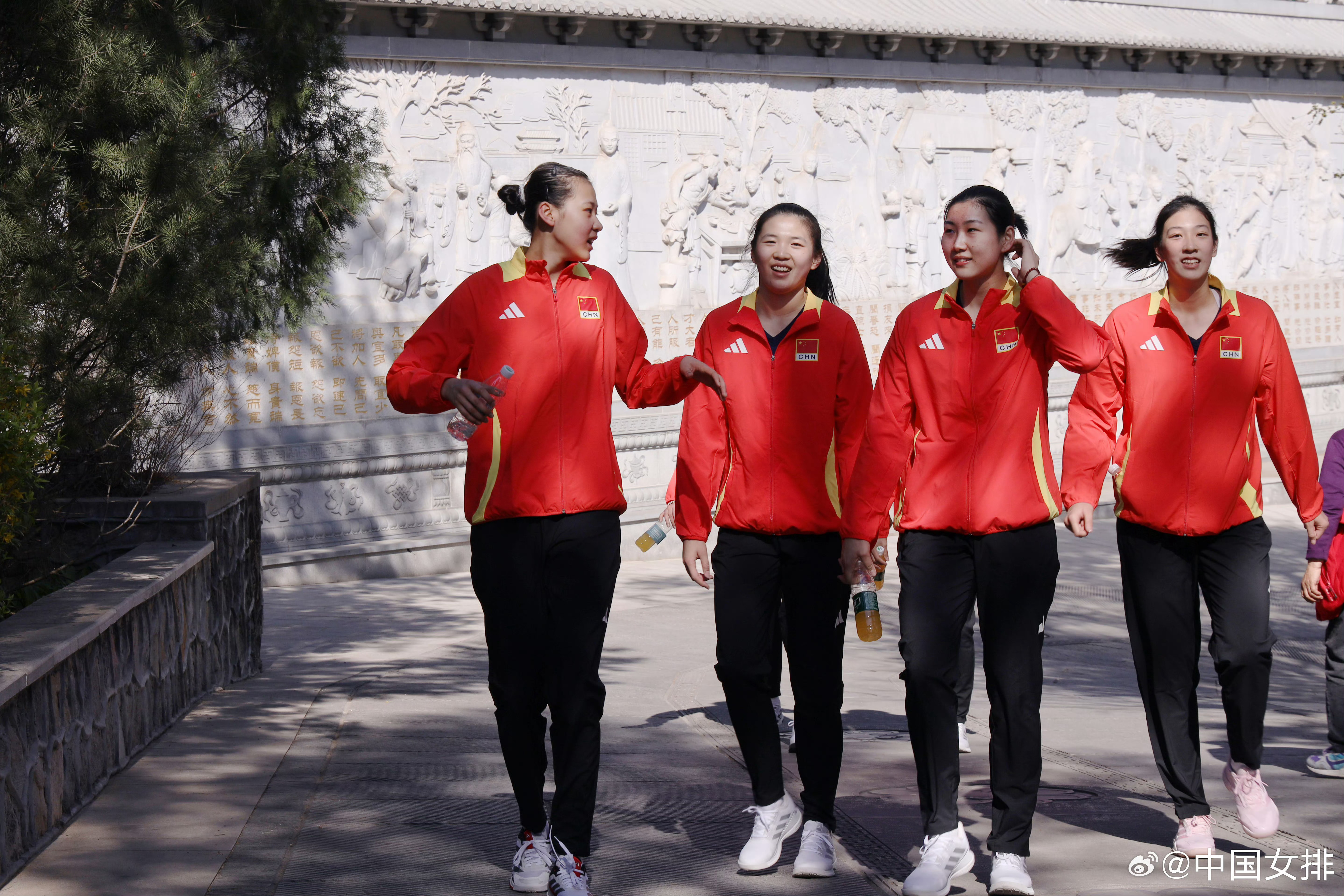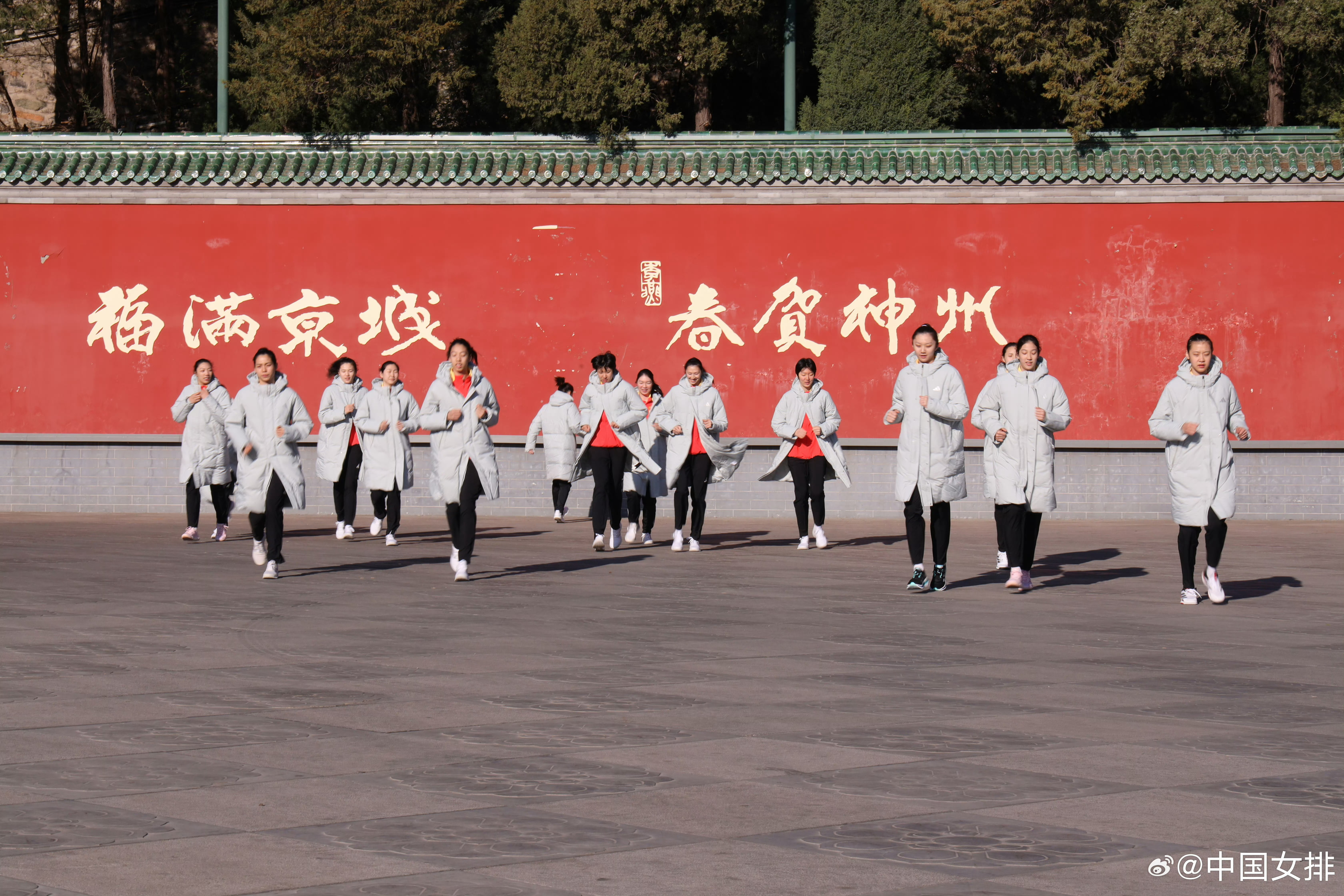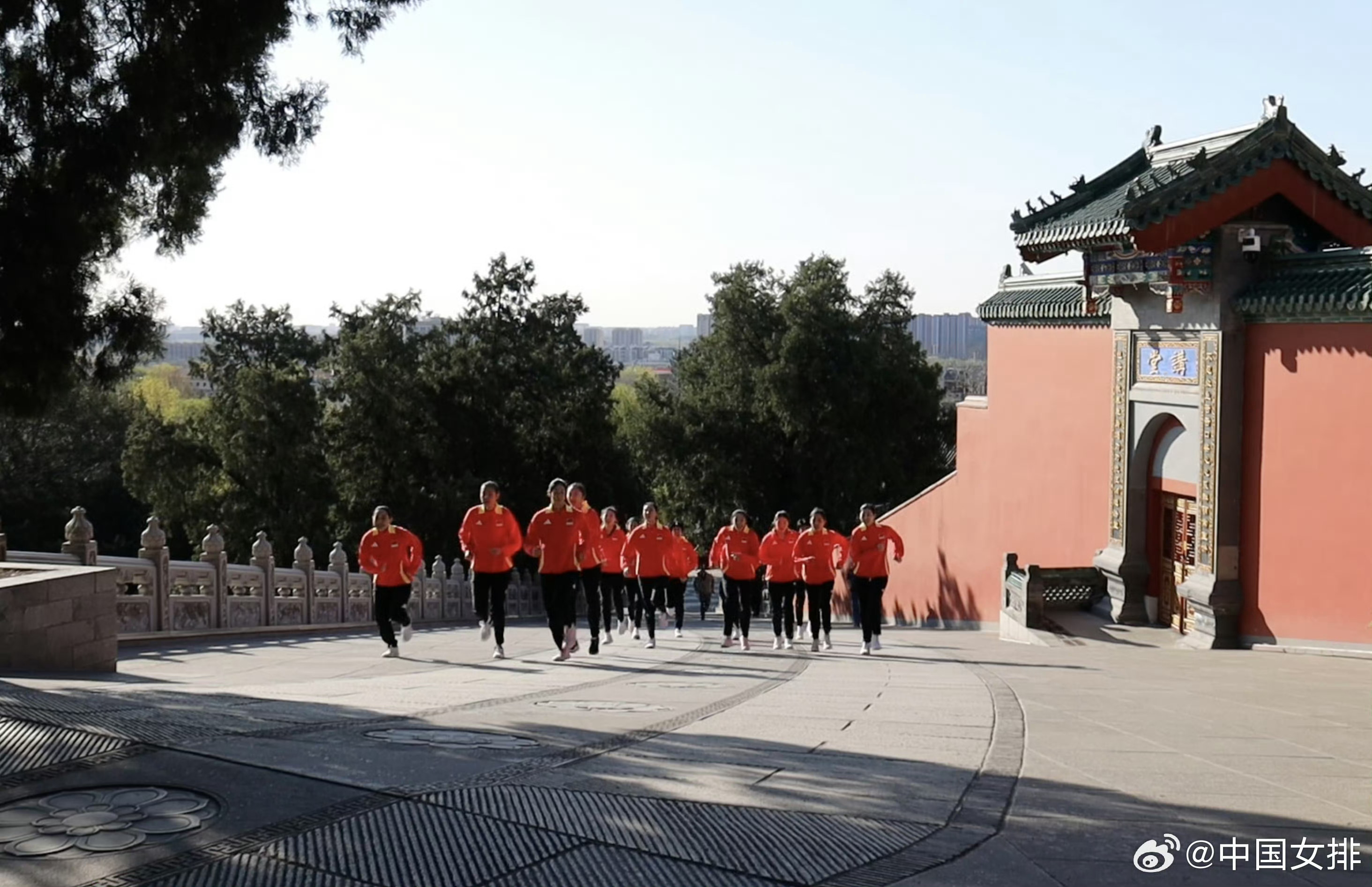 4月7日上午,2026年中国女排首批集训名单中的15名运动员在北京西山八大处公园