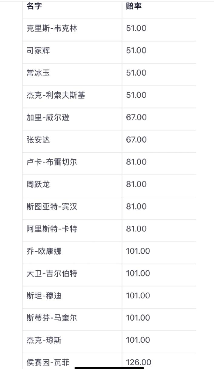 国外博彩公司给出的斯诺克世锦赛最新的夺冠赔率!赵心童因为在25-26赛季精彩的发挥,特别是在刚刚结束的斯诺克巡回锦标赛上的强势输出,让他的夺冠赔率来到了非常低的3.4。 世界第一特鲁姆普排名第二,火箭第三,塞尔比第四。 中国球员吴宜泽排名第六,肖国栋排名第十三,丁俊晖和其他四位球员并列第14。 现在网上有一个选择题,就是下面三个选项你最想看到哪一项? 1、赵心童世锦赛卫冕。 2、丁俊晖成为大满贯球员。 3、火箭集齐第八套大满贯。