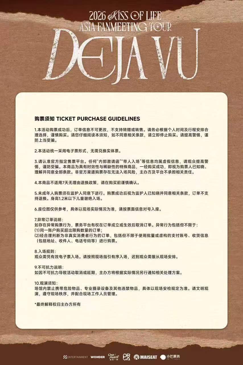 2026 KISS OF LIFE ASIA FANMEETING TOUR IN 广州&上海站官宣了!四位成员化身超酷调查官,带着「DEJAVU」秘密任务来袭~要和KISSY一起找回那些熟悉又心动的美好瞬间!这次见面会确定登陆广州跟上海,已经坐等抢票啦!
