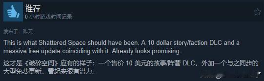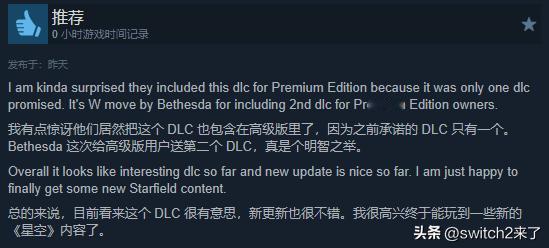 不少好评玩家都特别提到,这款DLC对当初购买高级版的玩家免费开放,这种做法值得夸赞,并且认为这一DLC使得《星空》更贴近当初发售时的承诺了。