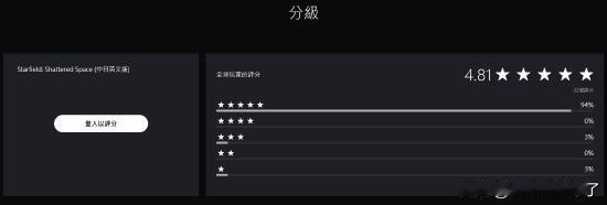 另外值得一提的是,此次《星空》上架PS商店,还同步推出了“破碎空间”和“地球舰队”两个剧情DLC。截至发稿,这两个剧情DLC的PS商店评价完全相同,都是32个评分,平均4.81星,94%为五星好评。