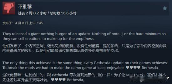 差评方面,玩家批评此次更新“于事无补”,无法令人满意,并且似乎还存在运行稳定性的问题。