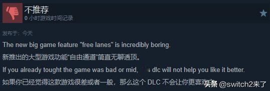 差评方面,有玩家认为该DLC“糟糕、无聊”,还有玩家指出有本地化配音错误的问题。