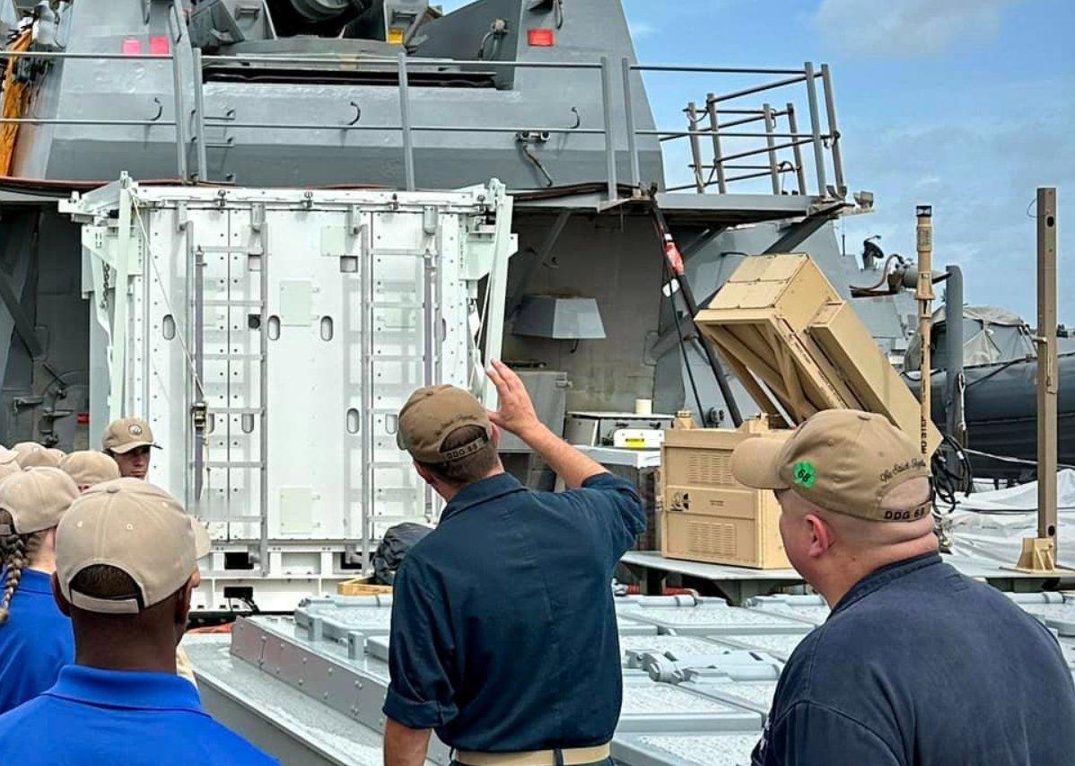 中外舰闻 烽火问鼎计划 每天认识一件兵器 帝国🇺🇸海军的舰载反无人机硬杀伤拦截武器系统(Coyote Block 2,图3,土黄色发射器)部署在DDG-51“阿利·伯克”级导弹驱逐舰上(图1,图2)。