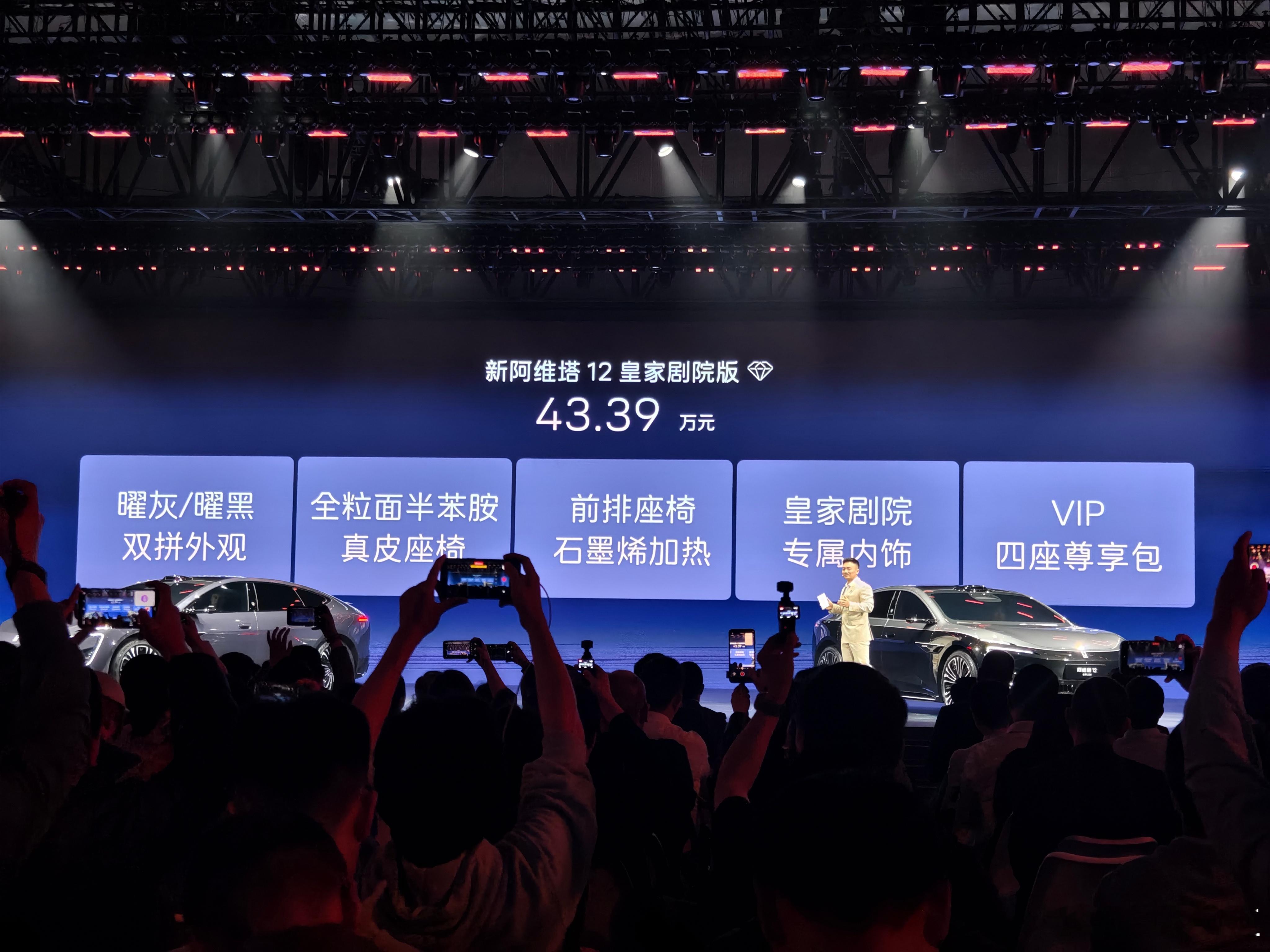 最后压轴登场43.39万皇家剧院版,曜灰/曜黑双拼外观、全粒面半苯胺真皮座椅、皇家剧院专属内饰,把奢华做到极致,顶奢出行新标杆!全系华为乾崑ADS 4.0智驾+三激光雷达不缩水,鸿蒙座舱HarmonySpace 5大模型加持,从家用代步到性能操控,再到商务顶奢,新阿维塔12真正做到了全价位、全场景、全需求覆盖,闭眼选不踩雷50万内豪华轿车首选
