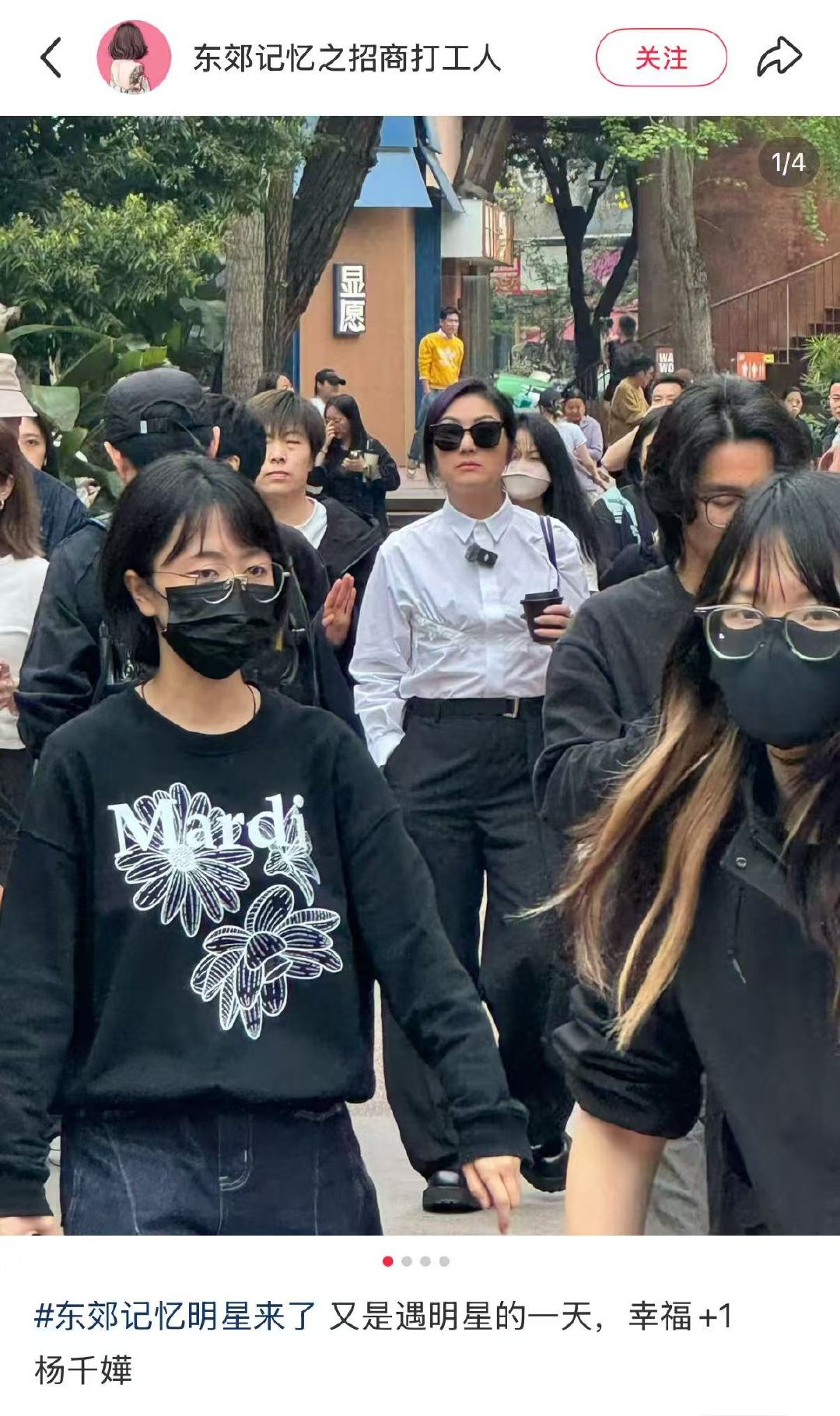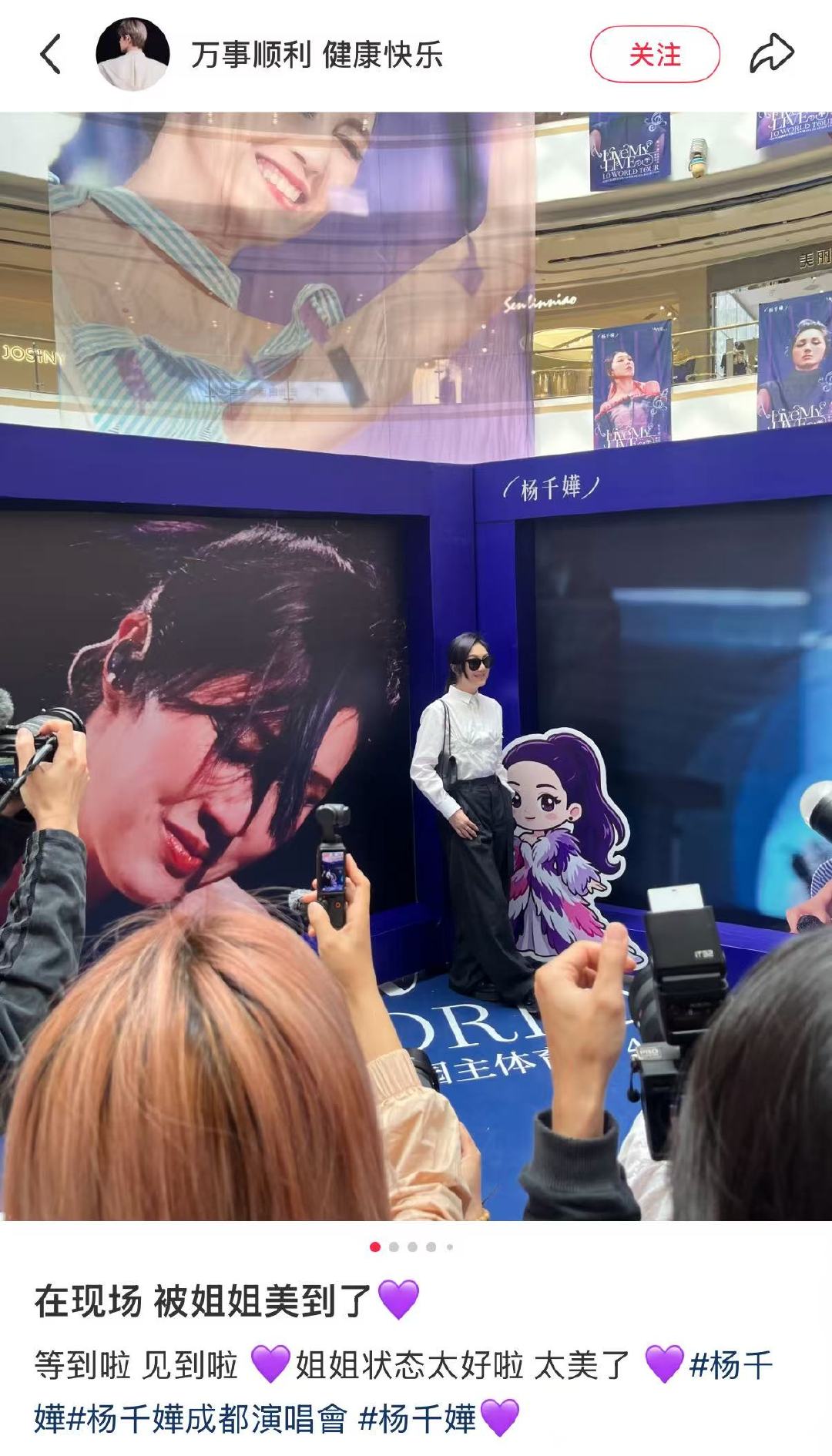杨千嬅打卡吴彦祖成都偶遇杨千嬅 商场应援互动、双子塔拍大屏、东郊记忆找阿祖,杨千