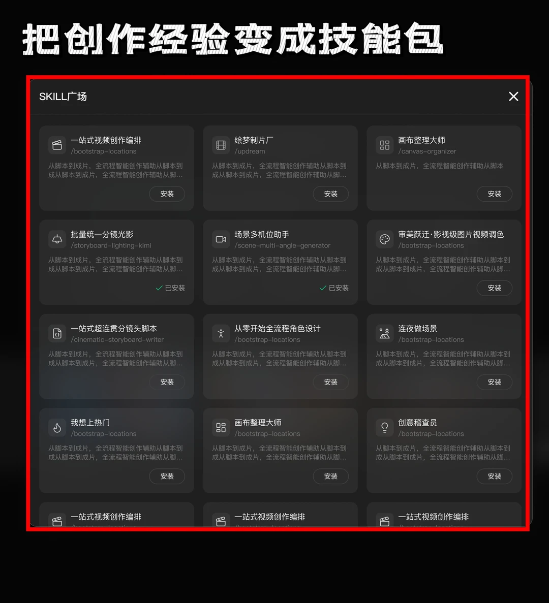 它有个“技能库”,你可以把自己的一套方法论沉淀进去,下次直接调用。