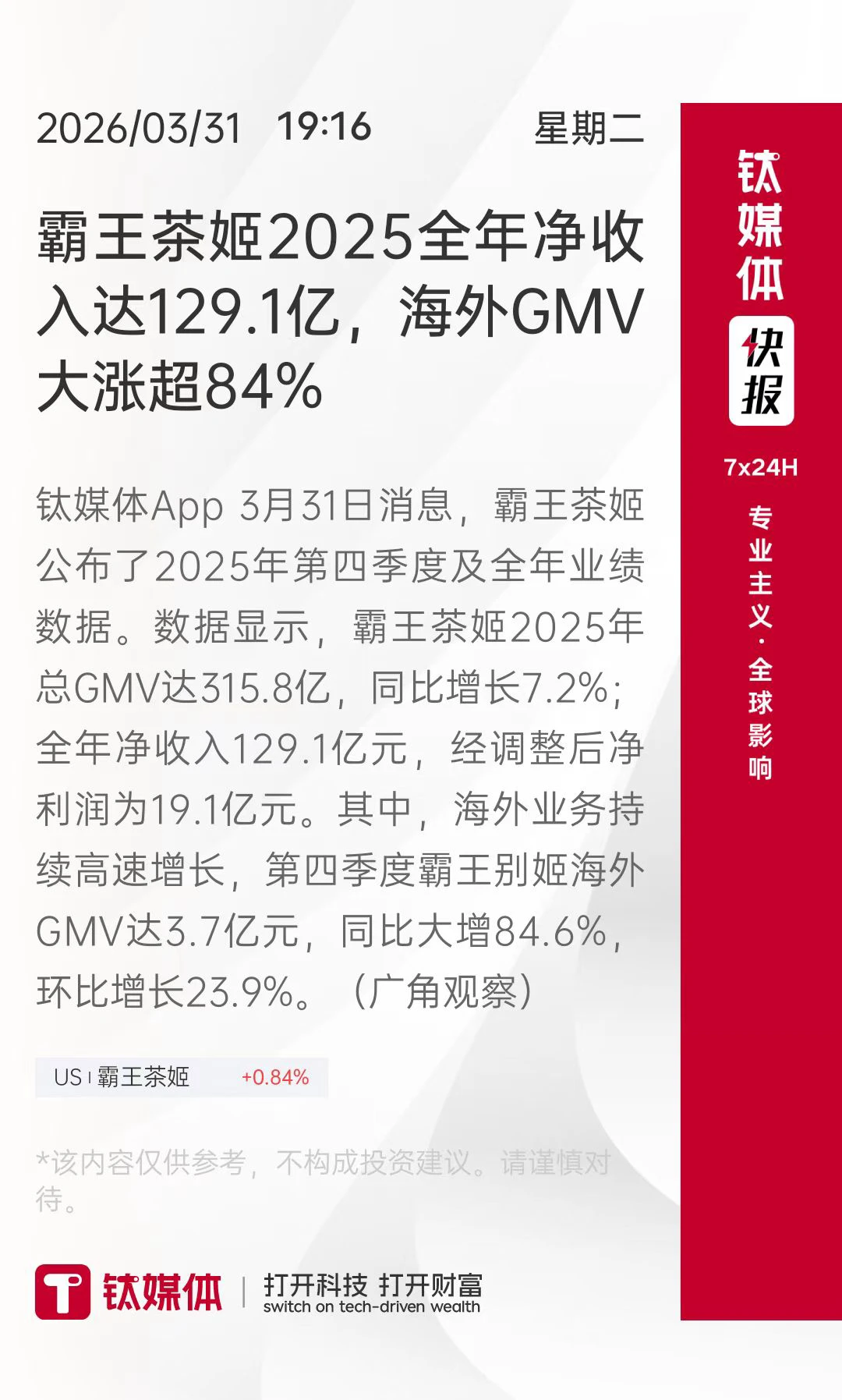 今晚,霸王茶姬发布2025年财报