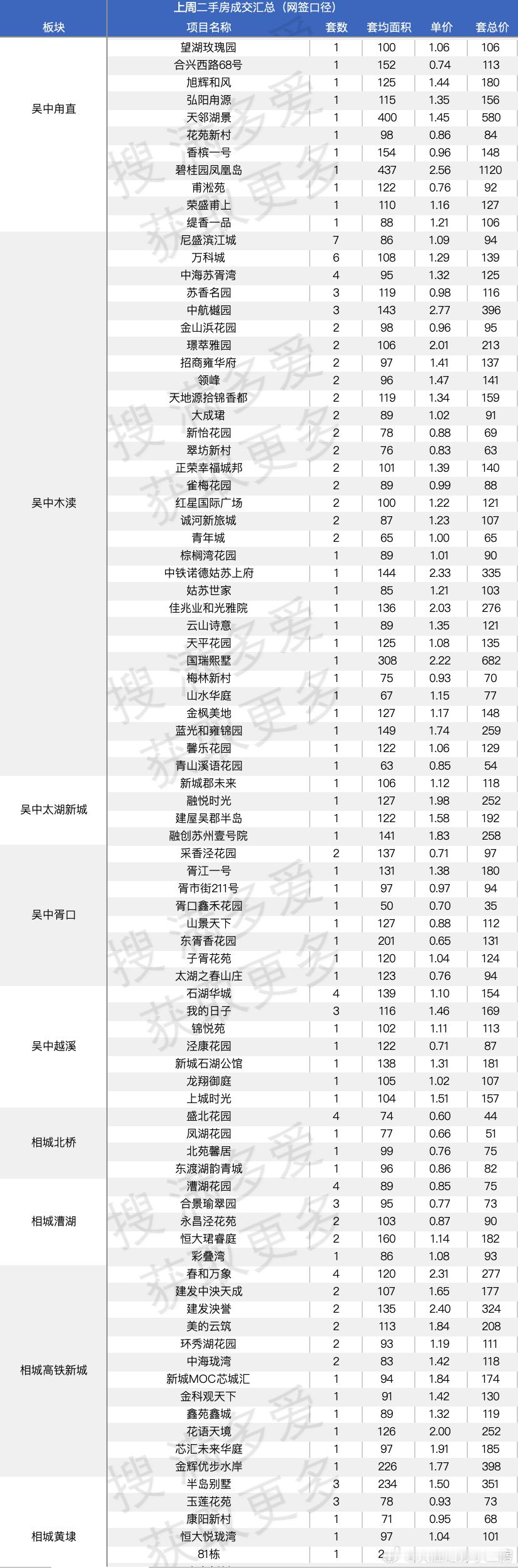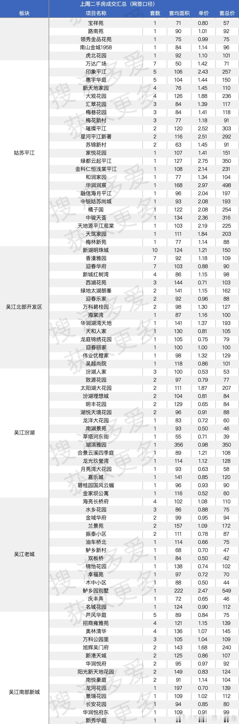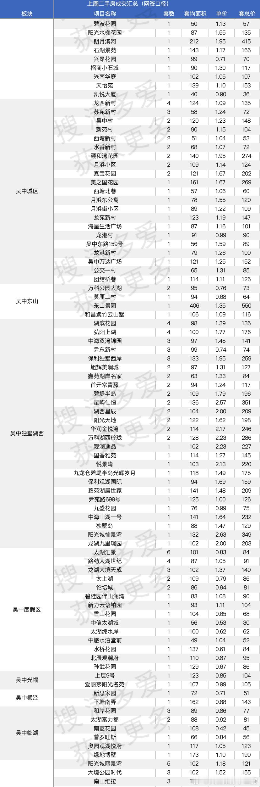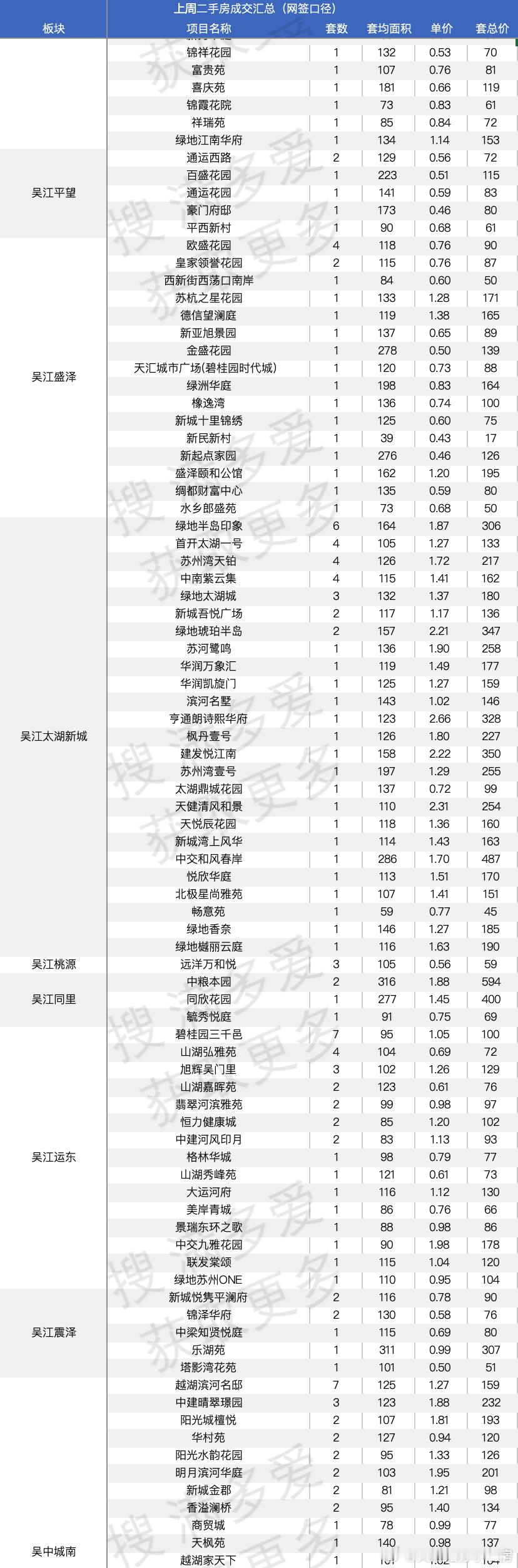 比如木渎的天地源,现在最新二手成交单价只有1.35万了