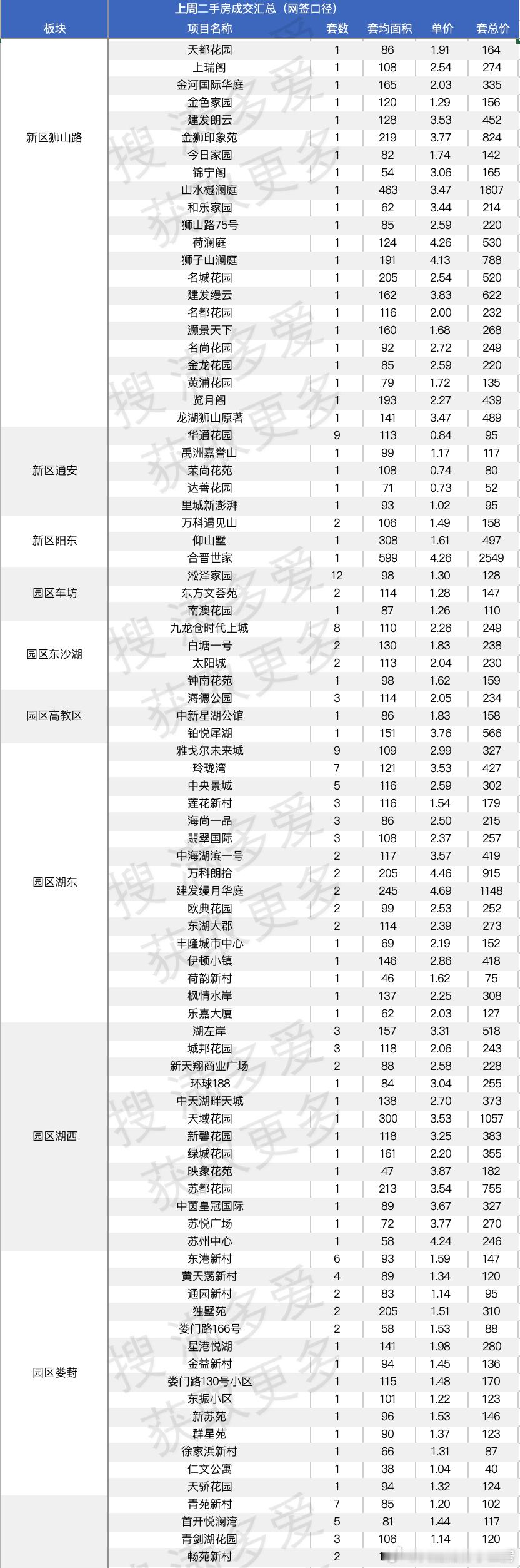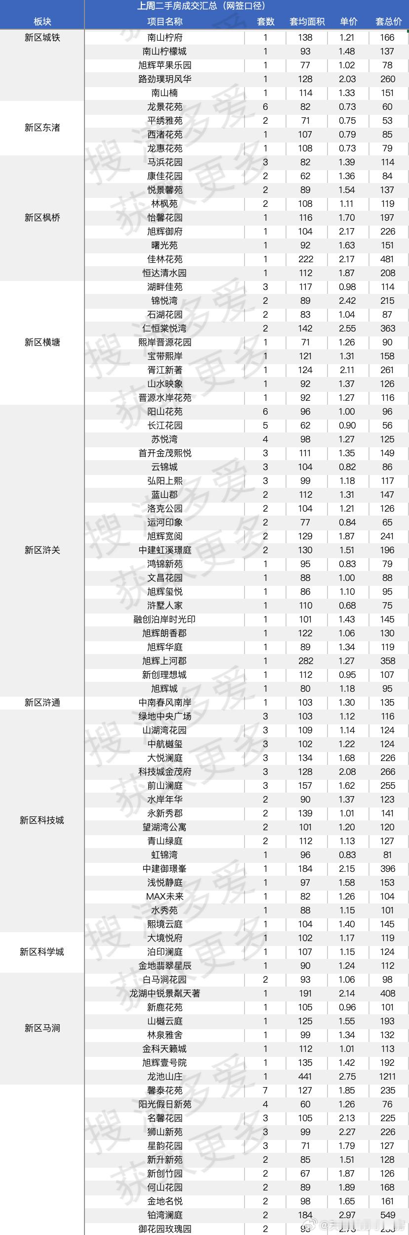 同样在新区狮山板块,上周卖最多的是馨泰花苑,卖了7套
