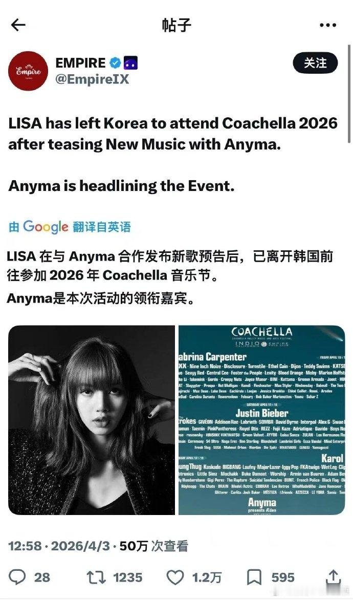 Lisa四登科切拉科切拉终极彩蛋!Lisa 空降同台 Anyma,四登舞台封神Lisa将空降科切拉