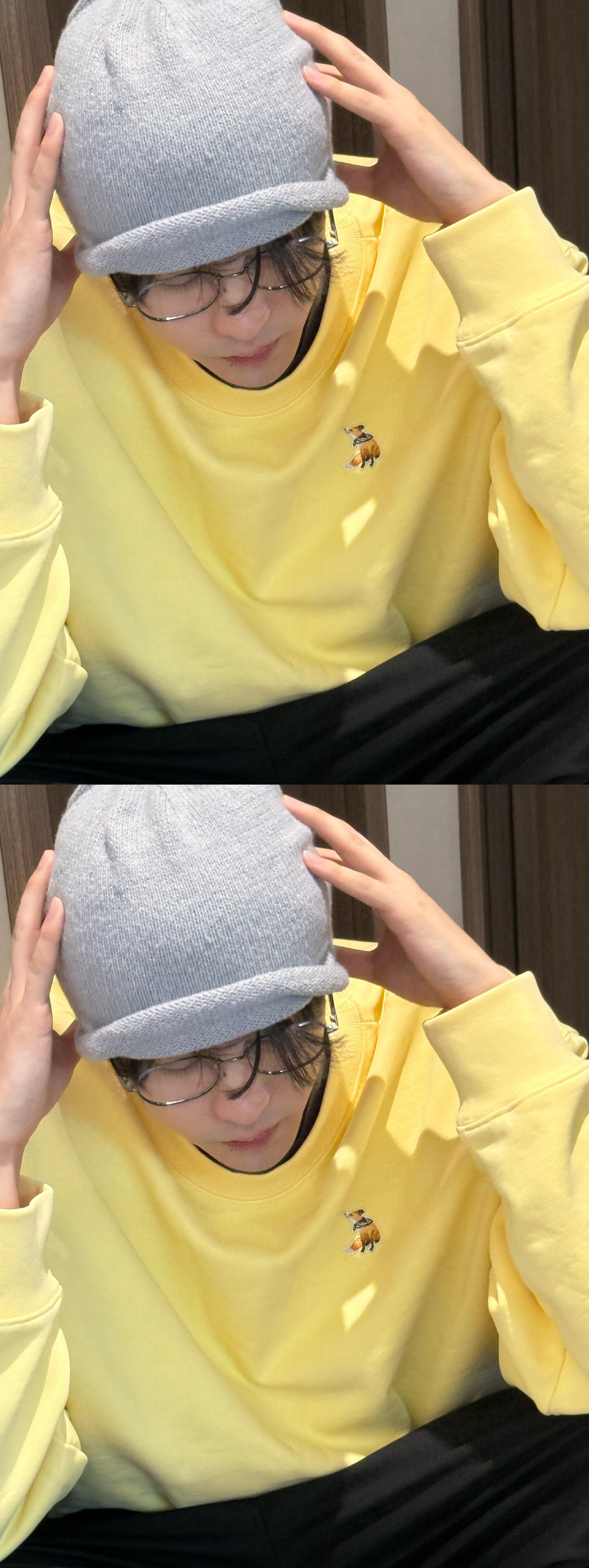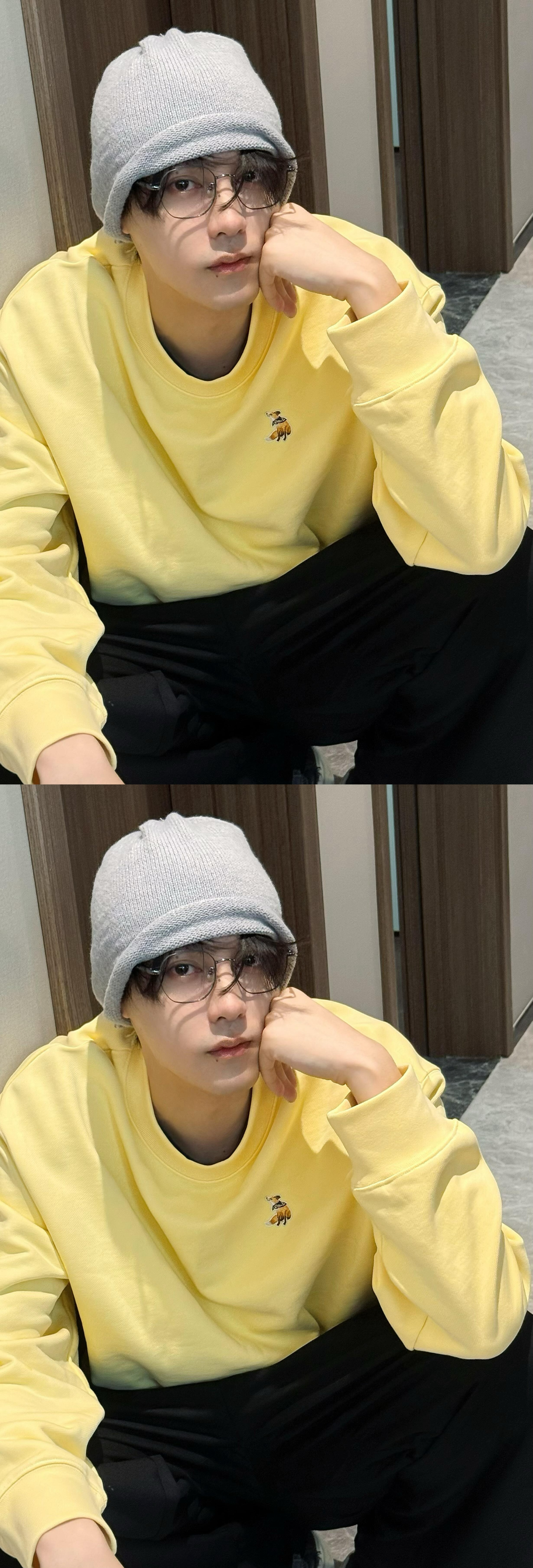 田栩宁穿柠檬黄营业 田栩宁今日份营业 柠檬黄卫衣➕冷帽➕金丝眼镜好帅 头发变长了 雷子把柠檬水🍋穿身上😍