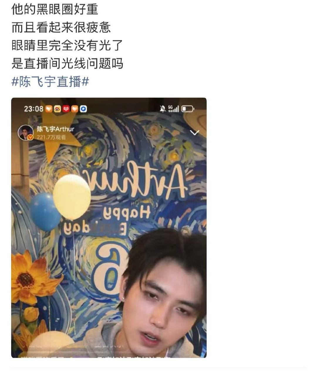 陈飞宇看上去好疲惫 生日直播没精打采的,明显没休息好。陈飞宇生日直播状态 但该有