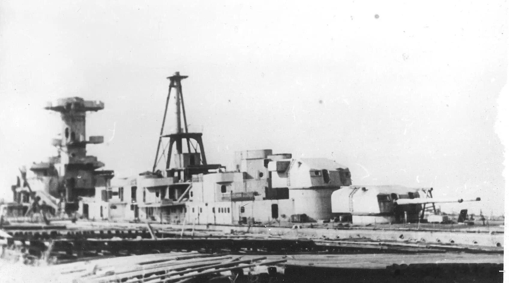 停泊在列宁格勒的未完工的彼得罗巴浦洛夫斯克号重巡洋舰(即前德国海军希佩尔海军上将