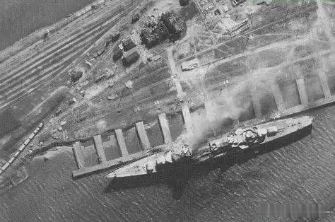 停泊在列宁格勒的未完工的彼得罗巴浦洛夫斯克号重巡洋舰(即前德国海军希佩尔海军上将级重巡洋舰吕佐夫号)摄于1941年。可见未完工的炮塔和上层建筑。图四就是德军侦察机镜头下的该舰,德军围城期间已经就位的主炮和弹药被用来朝自己之前的主人开火军事历史全触达中外舰闻每天认识一件兵器