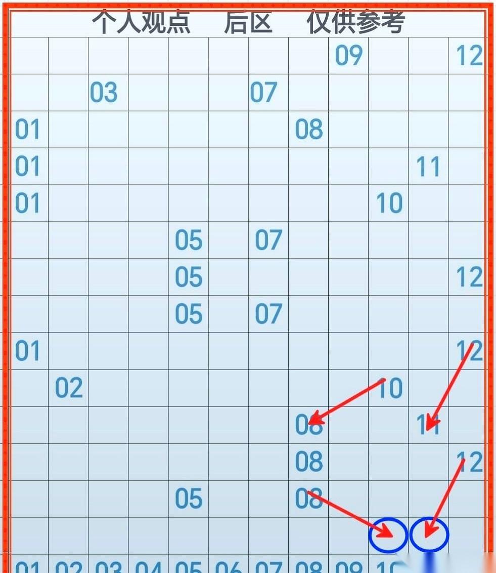 后区更玄乎。他指着08、10那两个数字,跟旁边人说:“你看这俩,像不像俩眼睛?”然后手一滑,点住了11和12,“这俩,上下对着,跟门神似的。”