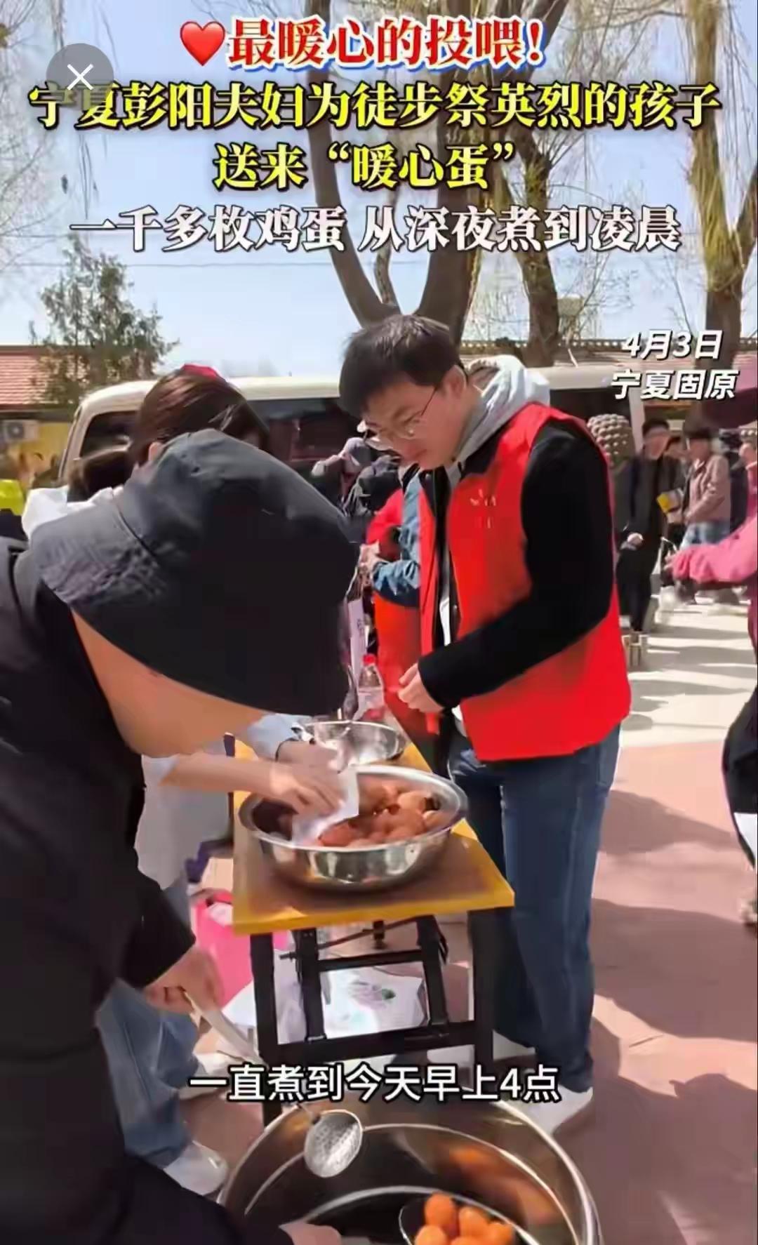 泪目!宁夏夫妇通宵煮1200多枚鸡蛋,10小时不眠不休,只为给徒步祭英烈的孩子送份热乎