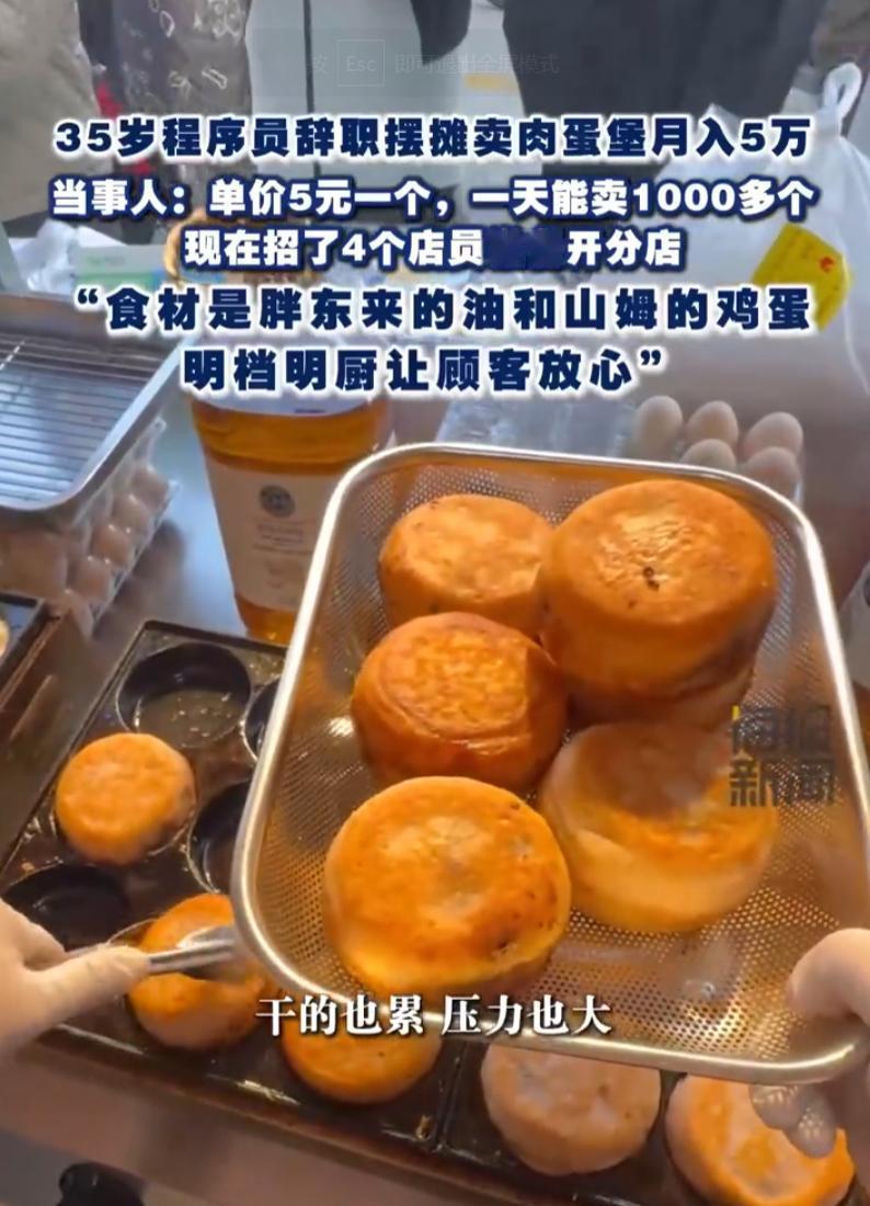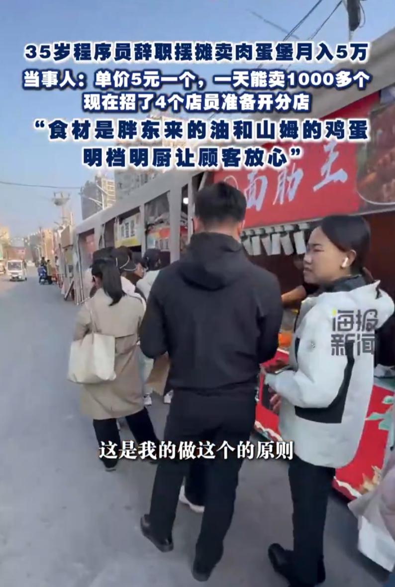 他递交辞呈那天,显示器上的代码还在滚动。没再找码农的活儿,而是跑去街边摆摊卖肉蛋堡。单个售价仅五元,凭借此营生,收入呈迅猛增长之势,短短一月,便直破五万大关,着实令人惊叹。