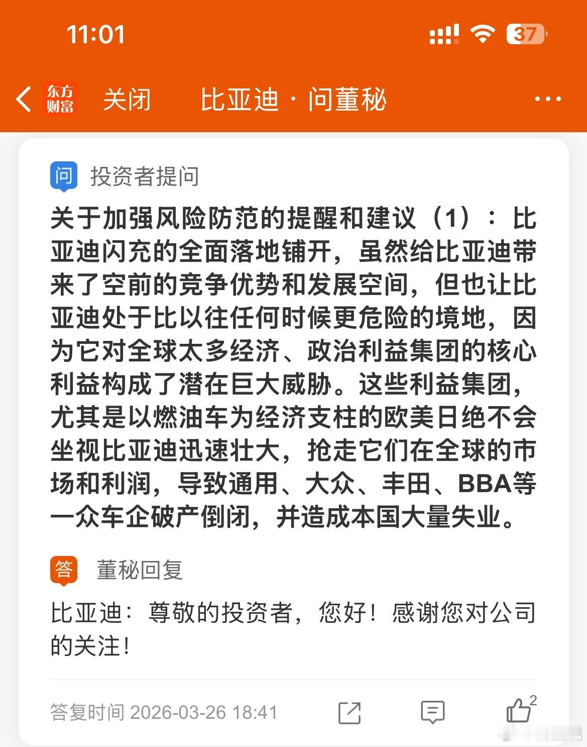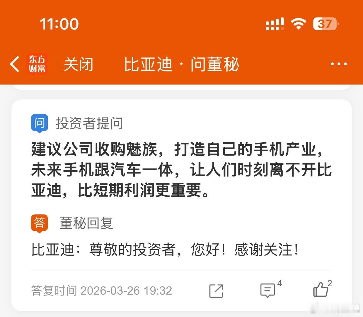 来看看比亚迪股东的留言,真是各种各样的建议,总体来看股东还是想让比亚迪更好的!除了那个收购魅族的卧底,魅族现在是吉利的!比亚迪