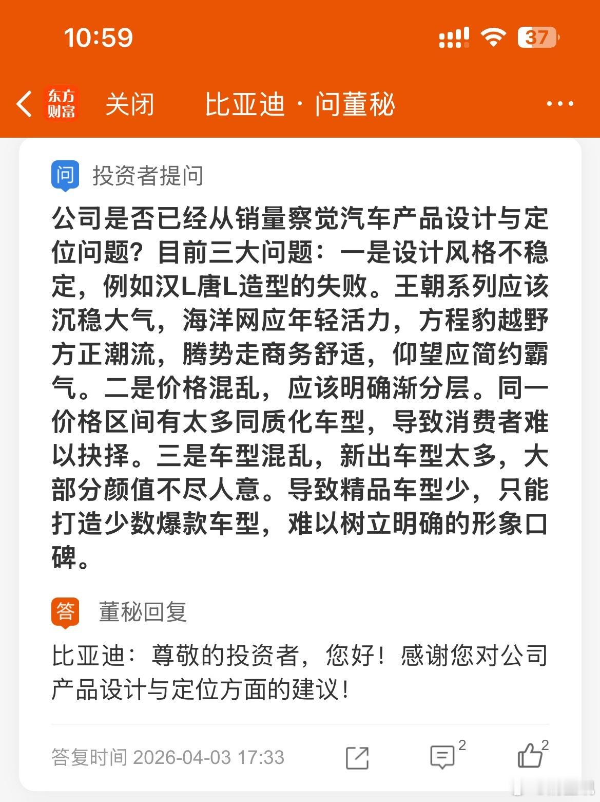 来看看比亚迪股东的留言,真是各种各样的建议,总体来看股东还是想让比亚迪更好的!除