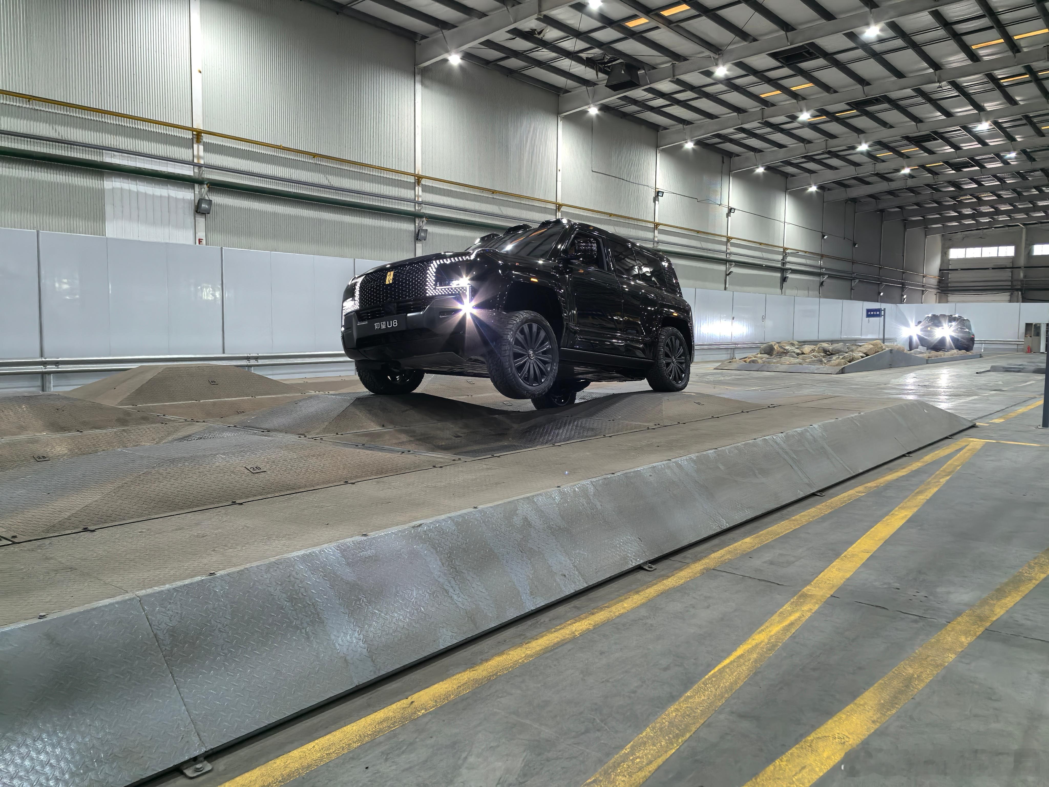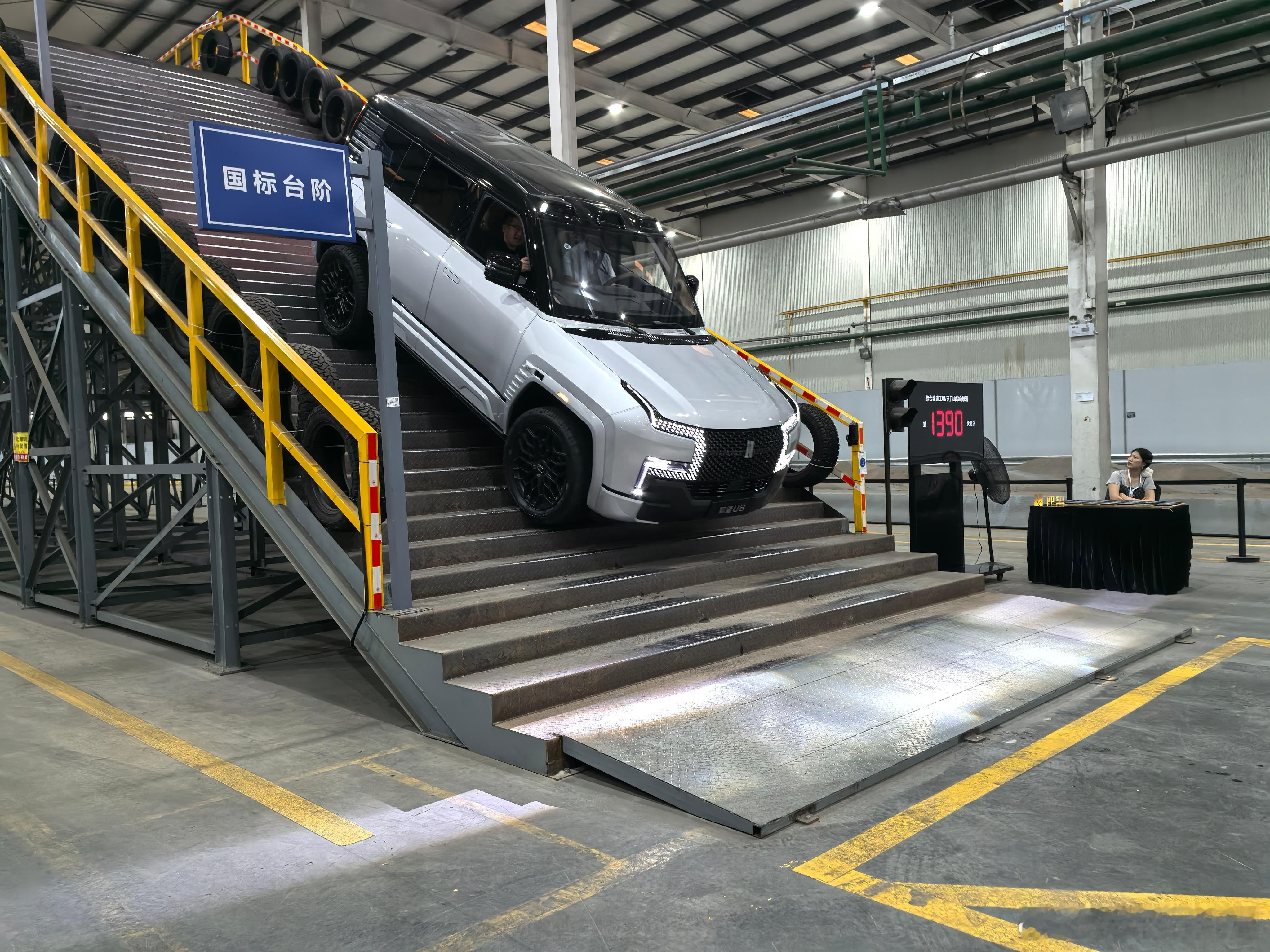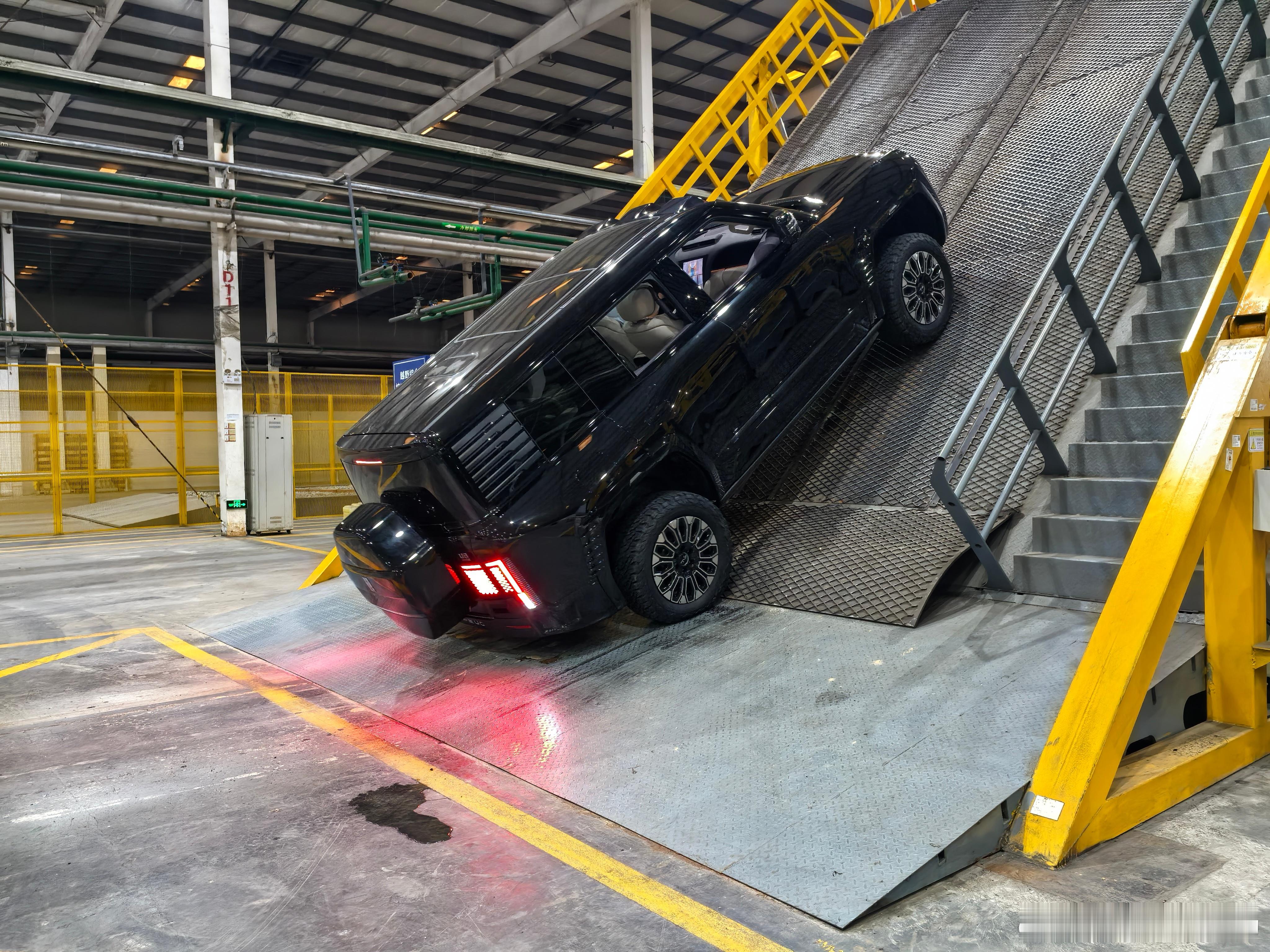 6【强悍动力确保通过性】新车拥有880kW最大功率和1520N·m最大扭矩,无论是越野障碍还是45°斜坡,甚至连楼梯上起来都是非常轻松,关键是还不用全力给油,稍微踩下一点就能轻松通过障碍。