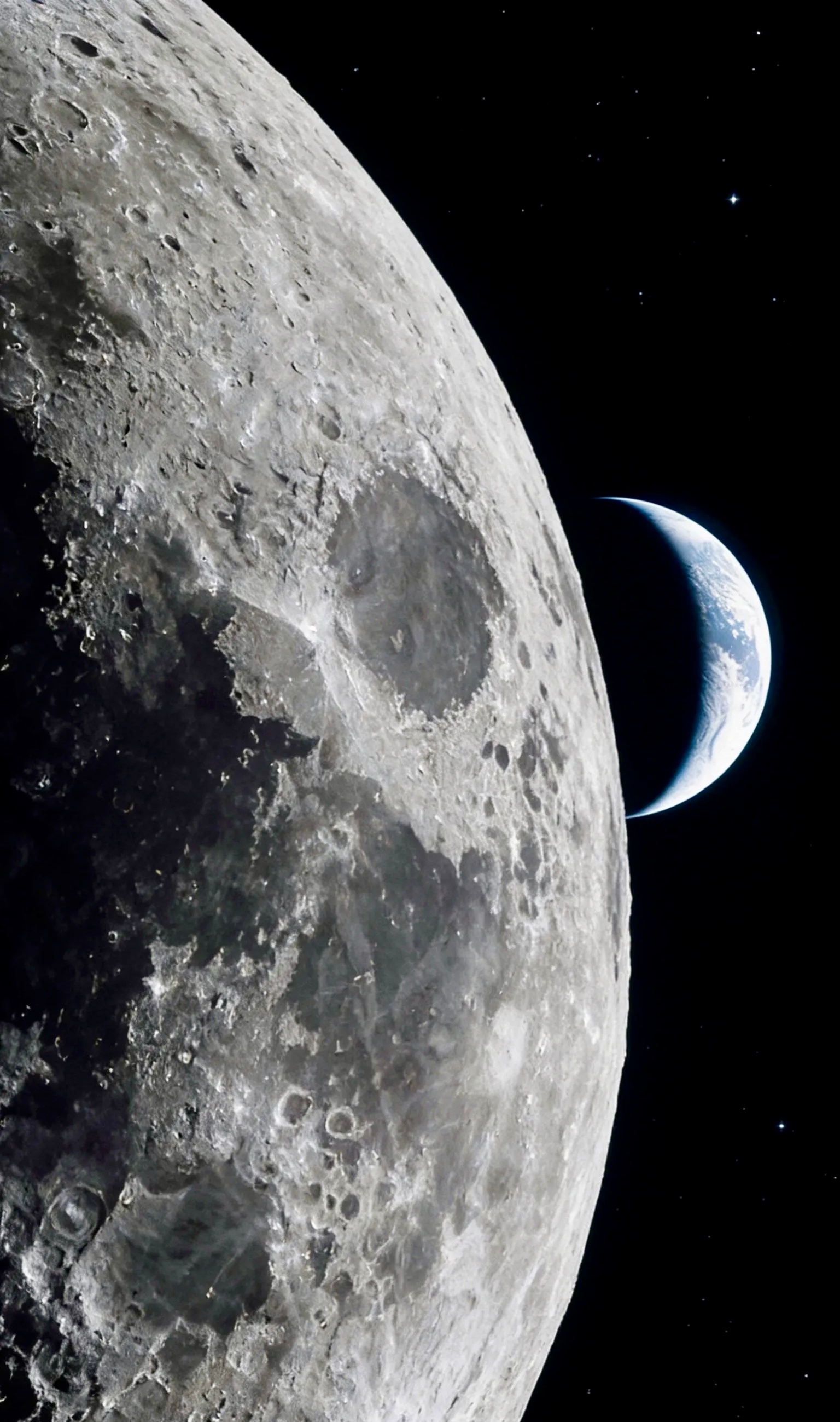 这些月、地照片是由阿尔忒弥斯2号(Artemis II)飞船上的宇航员所拍摄。在航行第6天时,他们的舷窗上月球完整挡住了地球,此时距离地球40.7万公里,这是人类目前所能抵达的的最远天际。